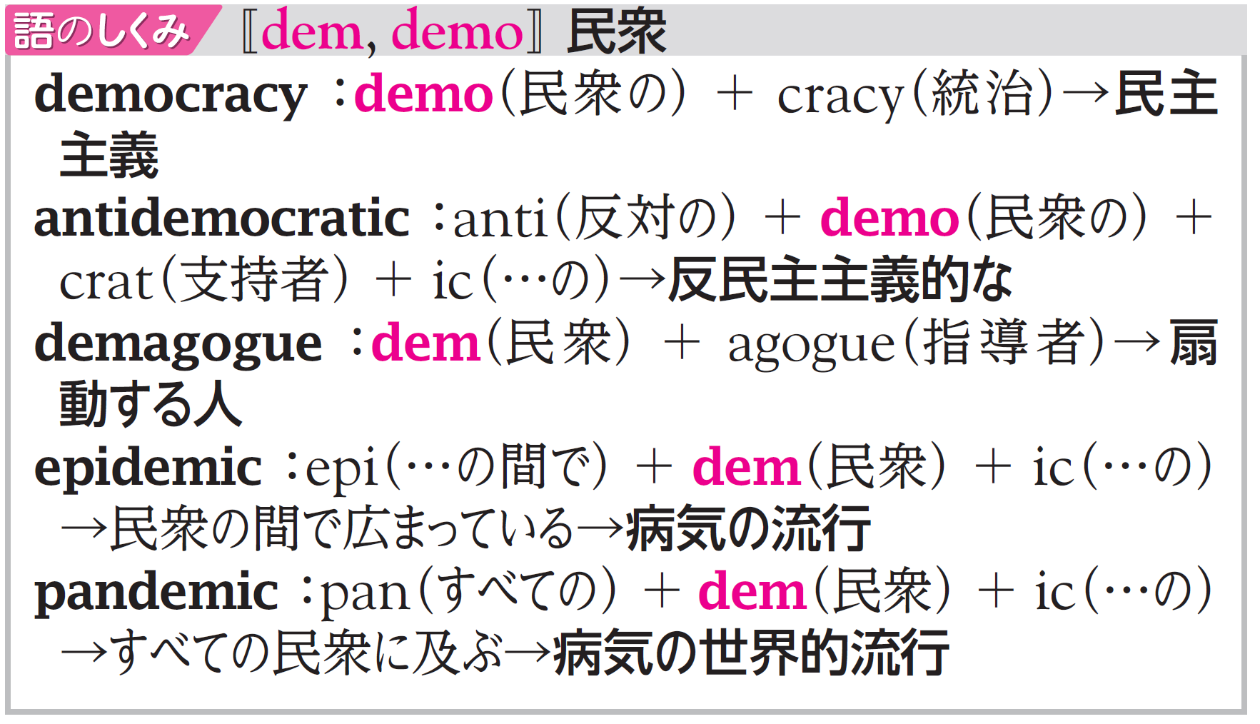 単語の語構成をわかりやすく解説。単語を丸暗記するのではなく、同じような構成の単語をあわせて学んだり、なりたちを考えながら学んだりできます。