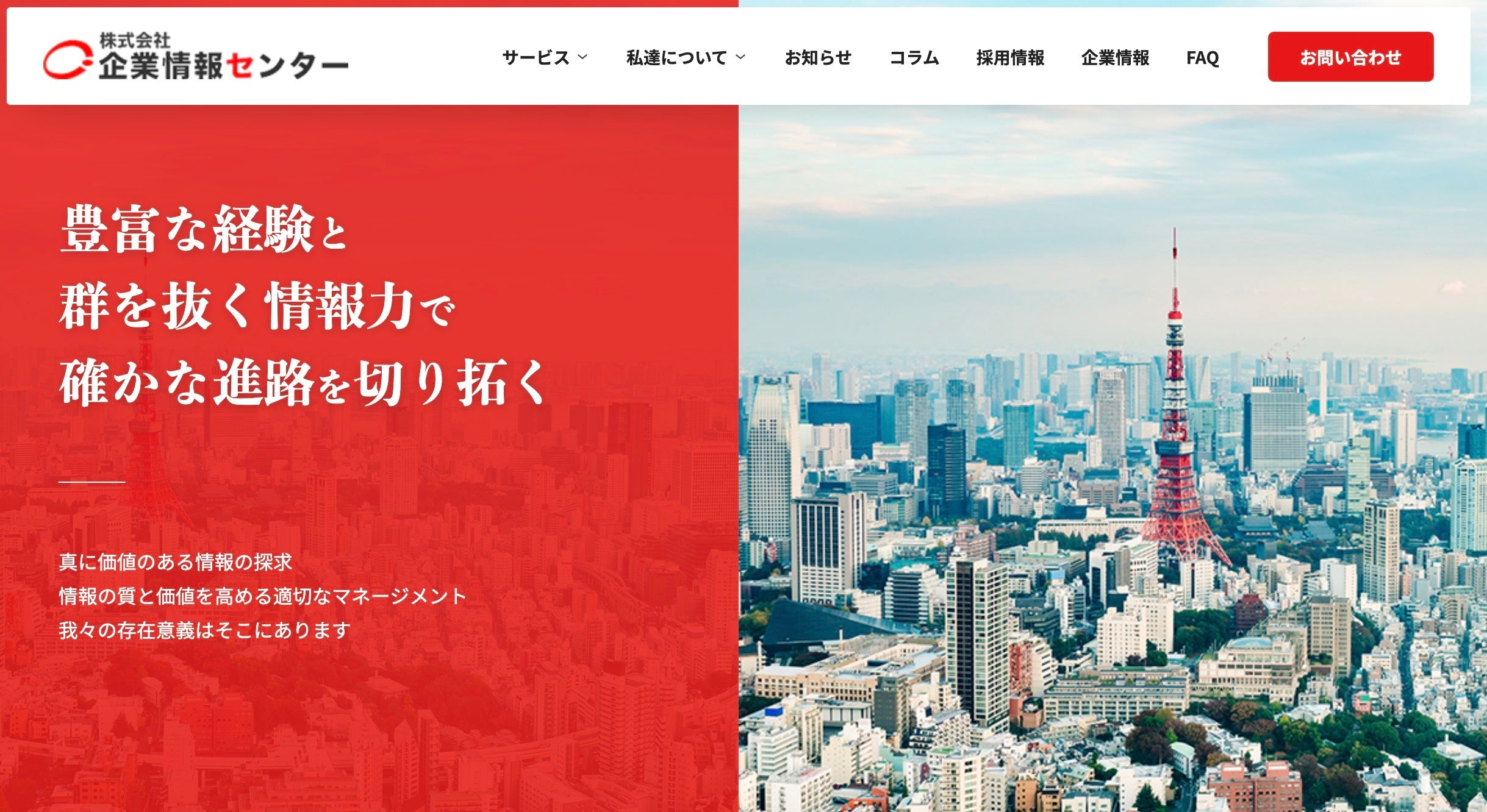 企業情報センターは、創業から36年1000社以上の導入実績を誇り、 延べ10万件以上の調査実績や実例ノウハウを保有する企業です。群を抜く確かな情報力と調査力により調査会社の域を超えたコンサルティング&リサーチを行う情報価値を創造する企業でバックグラウンドチェックのリーディングカンパニーです。