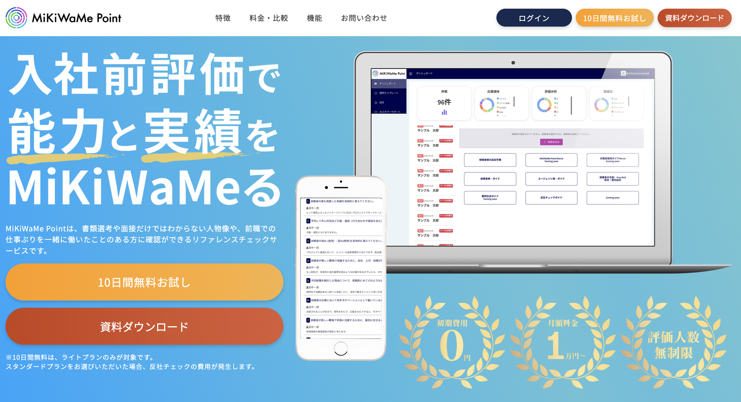 ・HRRTの提供するオンラインリファレンスチェック「MiKiWaMe Point」とは?