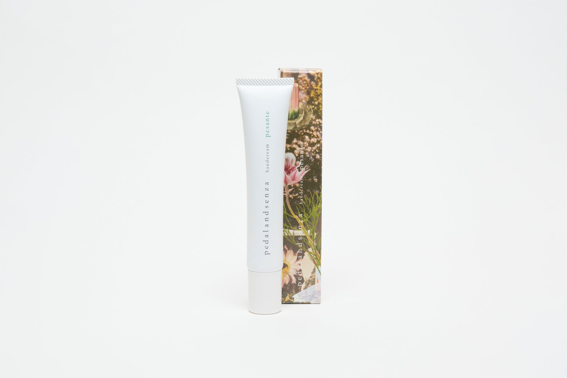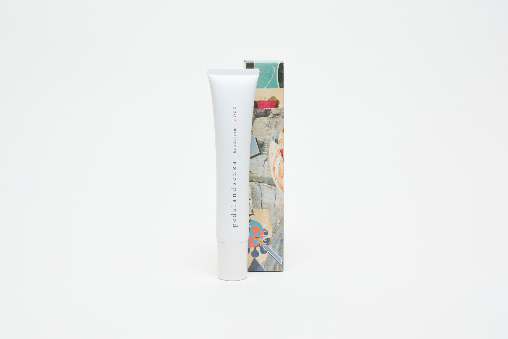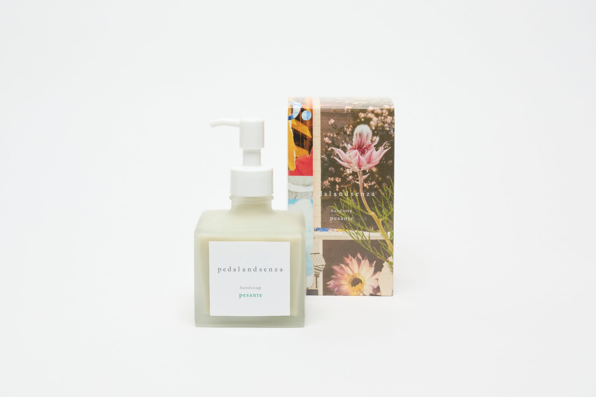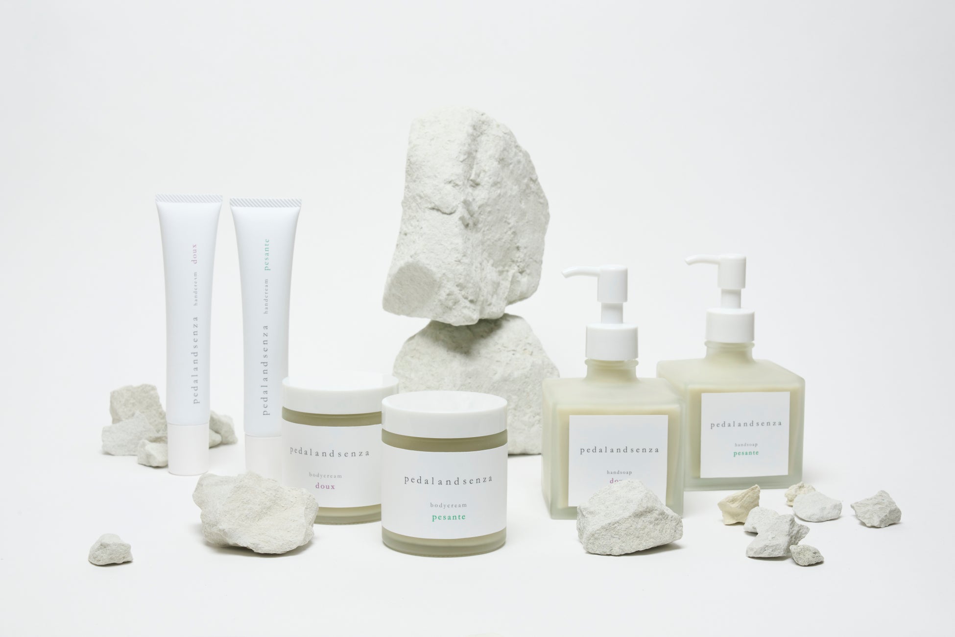 「Pedal & Senza(ペダル アンド センツァ)」は、ミネラル成分である稀少な国産の粘土「モンモリロナイト」を主成分として、香り豊かな植物を組み合わせ、肌と気持ちに新鮮な体験を届ける天然由来のコスメです。フラワークリエーター 篠崎恵美 監修による美しい香りと、アートディレクター永戸鉄也が手がけたエコロジー視点のアートワークに包まれたパッケージ。自然の移ろいに寄り添うパフォーマンスで、巡りゆく日常に美しい抑揚をもたらします。デビューコレクションのハンド、ボディケアシリーズは、2種類の香り、doux[ドゥー]とpesante[ペザンテ]を纏った全6アイテムをリリース。