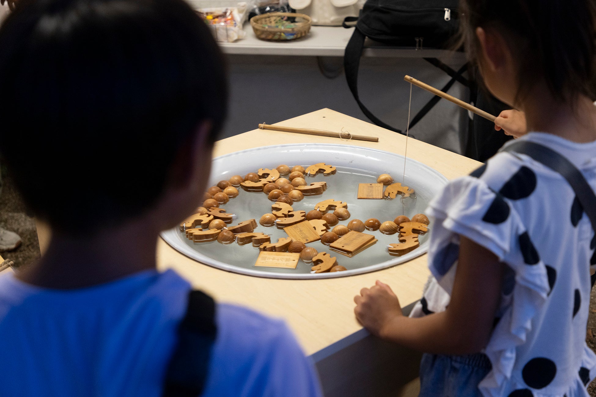 オリジナルゲーム「シャチ釣り」など、誰でも楽しめる「あそび」をご用意しています。名古屋城でしか買えないおみやげも販売しています。