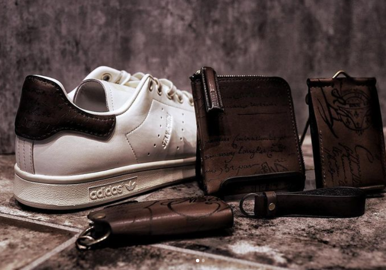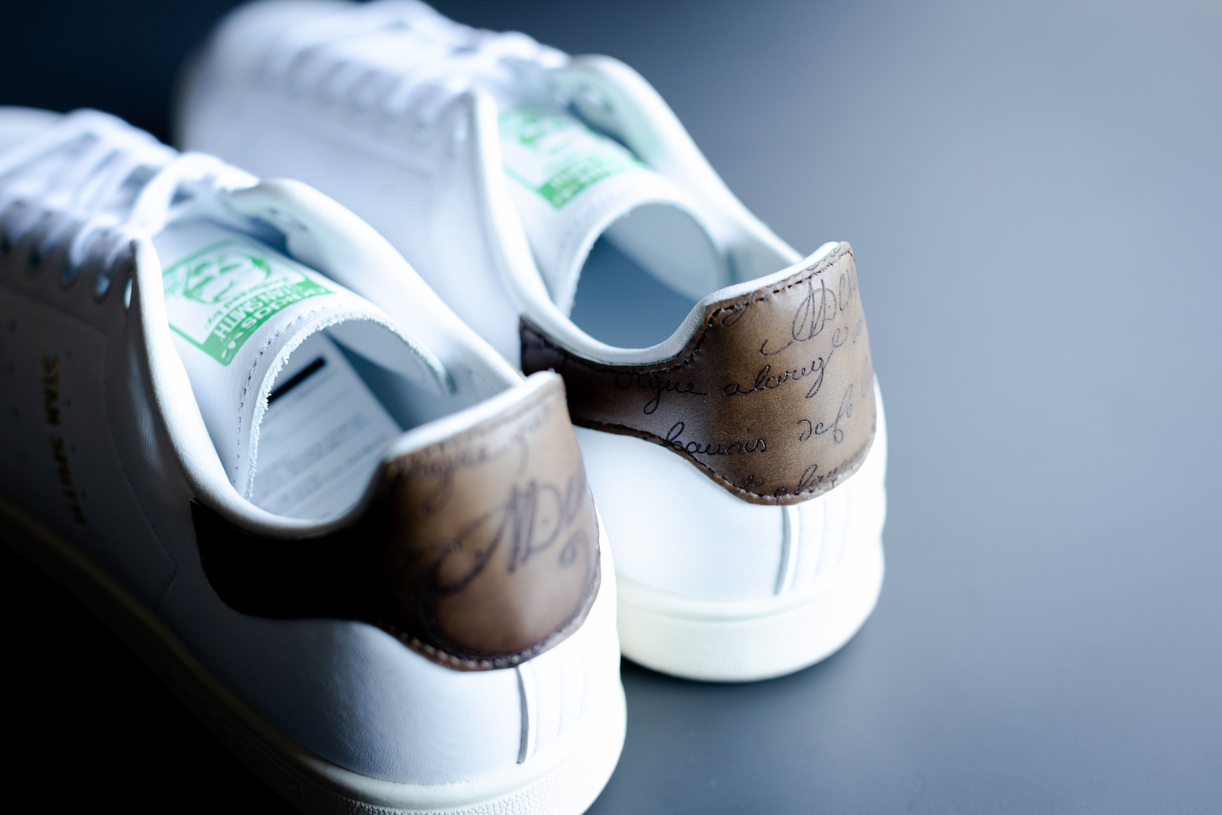 スタンスミスの特徴であるヒールパッチを張り替えるカスタム事例。