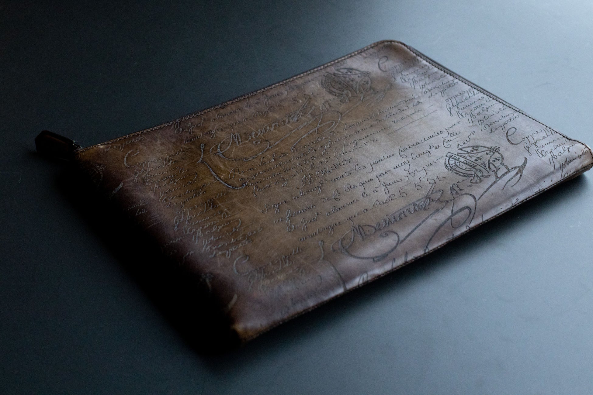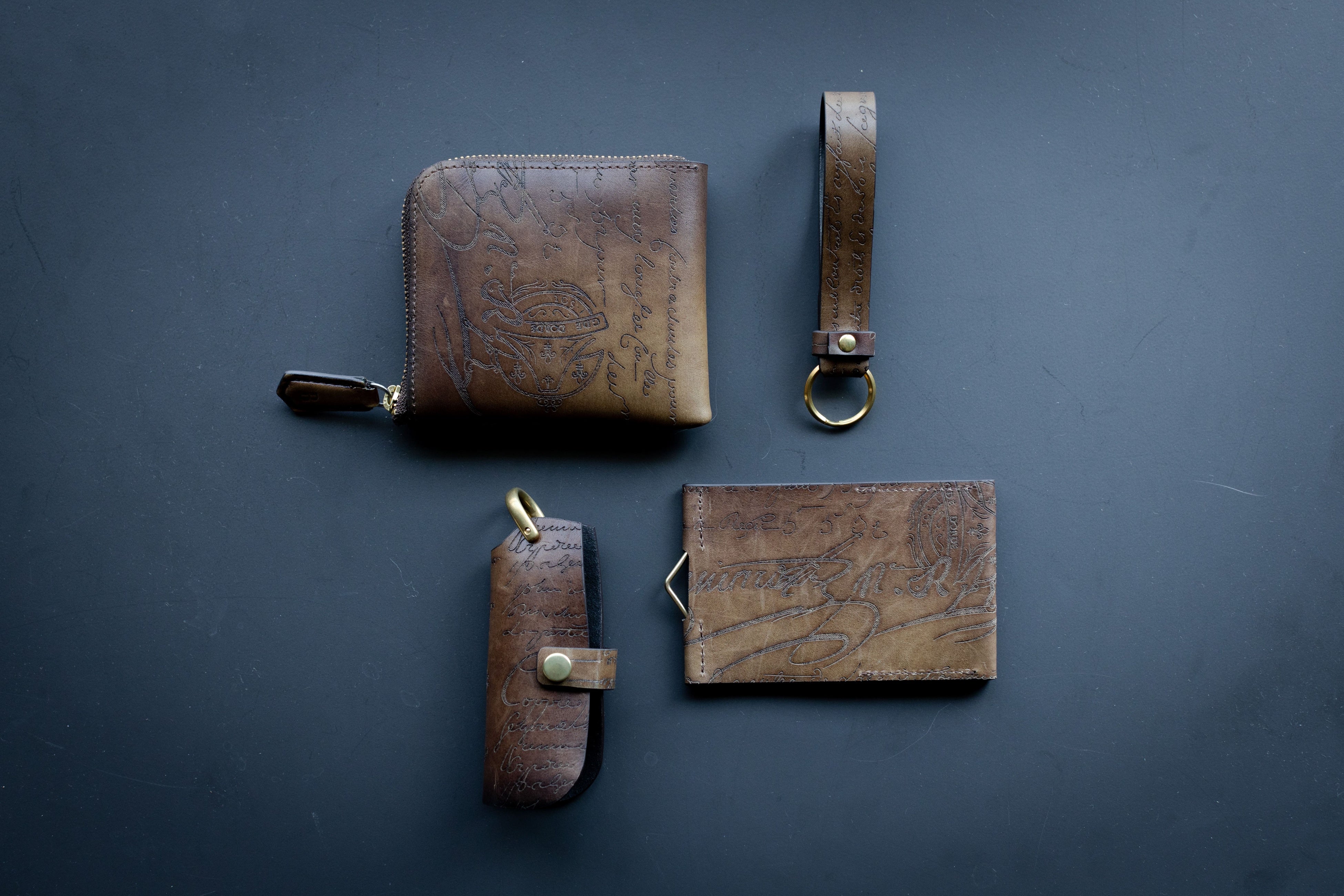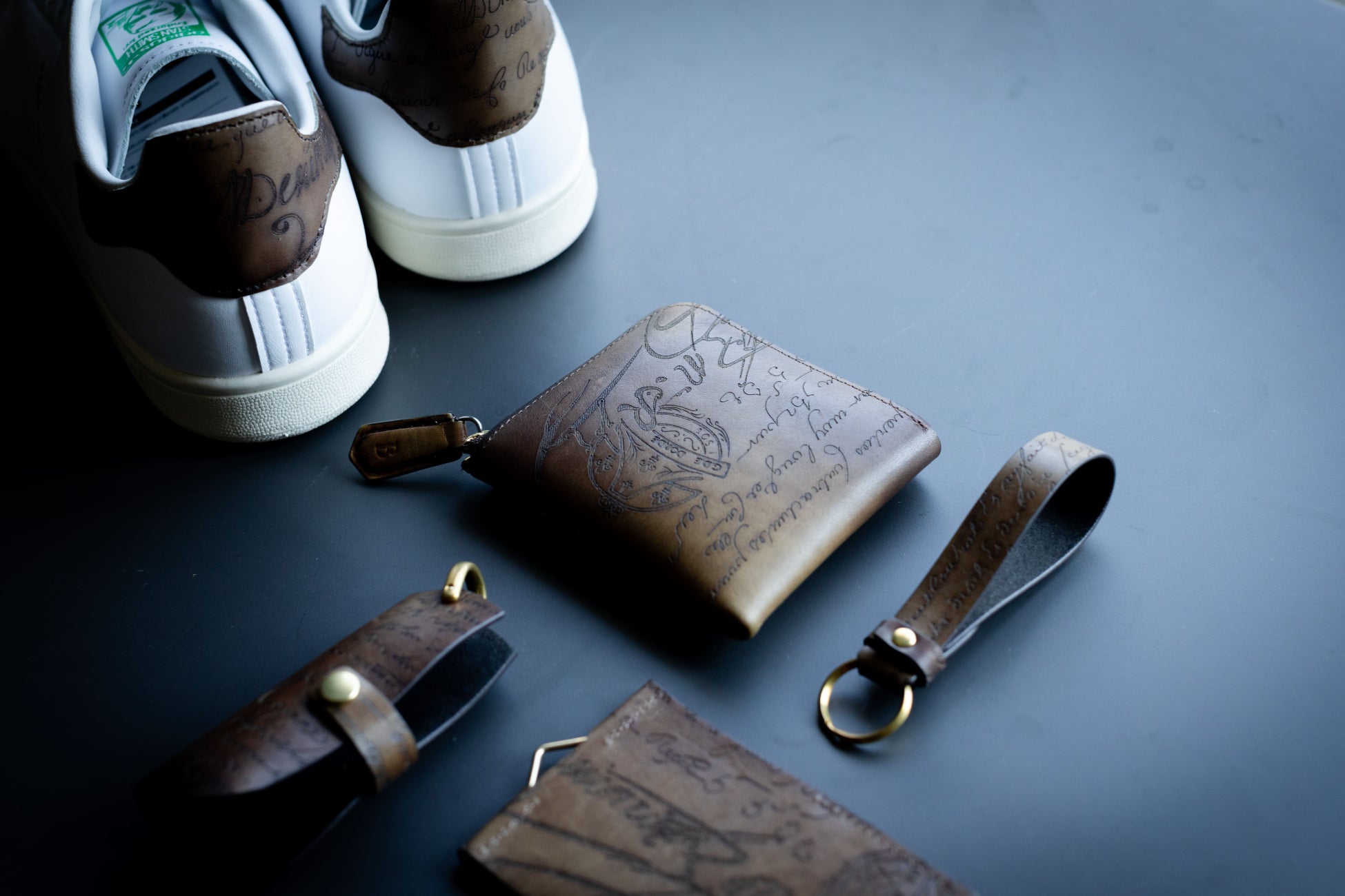 今回はイベント特別サンプルとして、ベルルッティのクラッチバッグからリメイクしたスモールレザーグッズや、