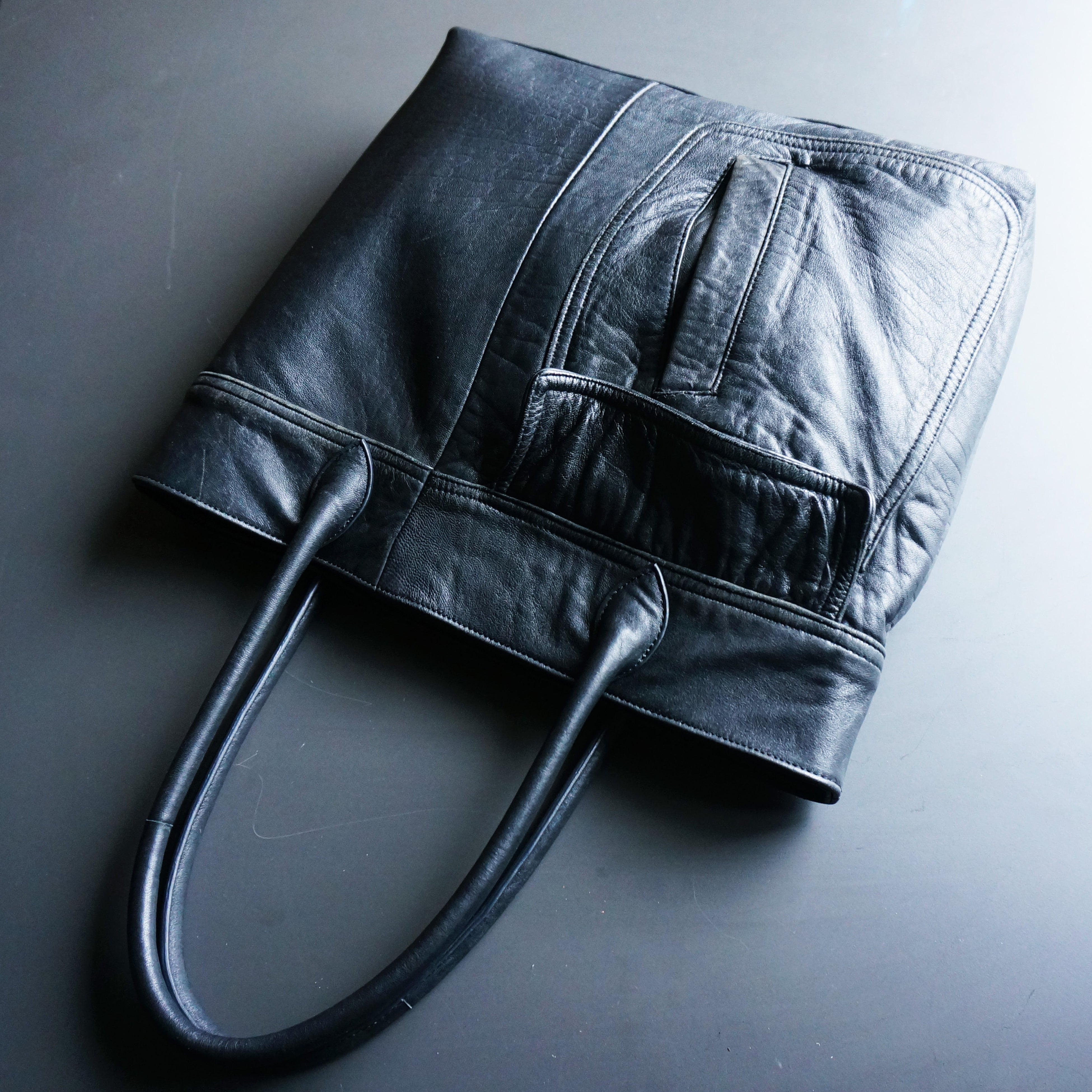 同クラッチバッグをパーツに利用したカスタムスタンスミス、レザージャケットをリメイクしたトートバッグもご用意しております。
