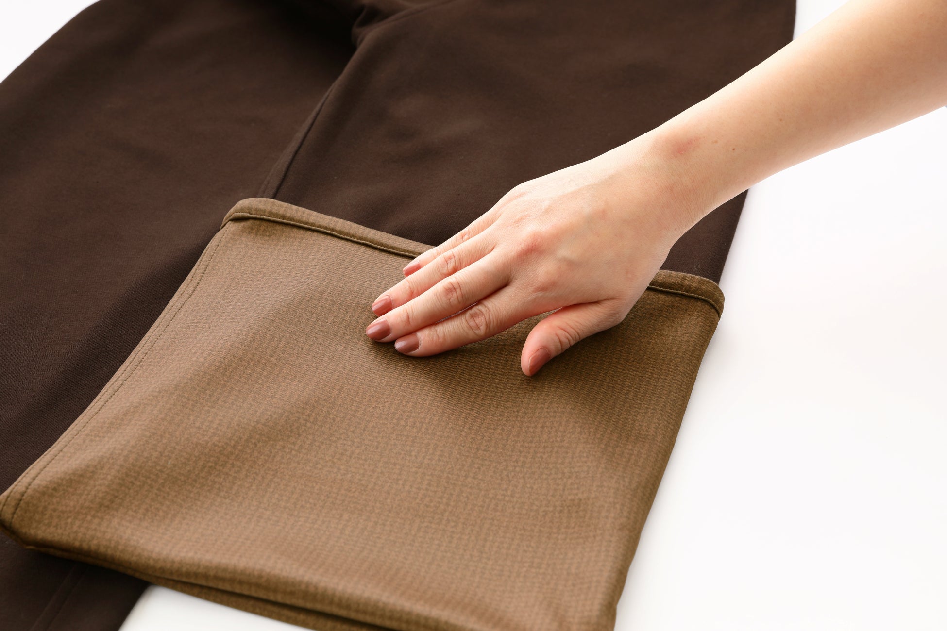 シワになりにくいニット生地を使用しているため、旅行バッグに丸めて収納できます。カバンの中のスペースが空いて、荷物が減ります!