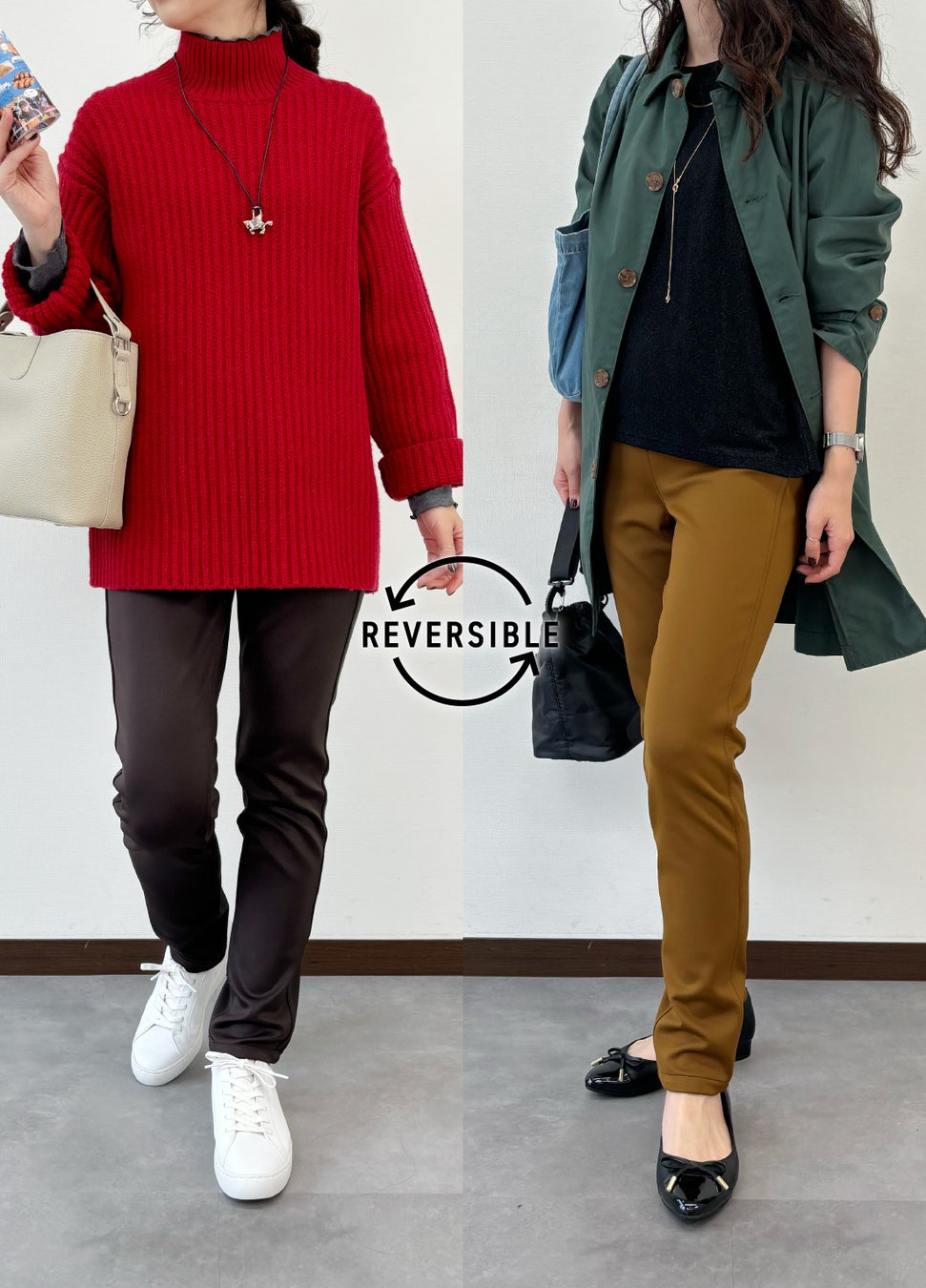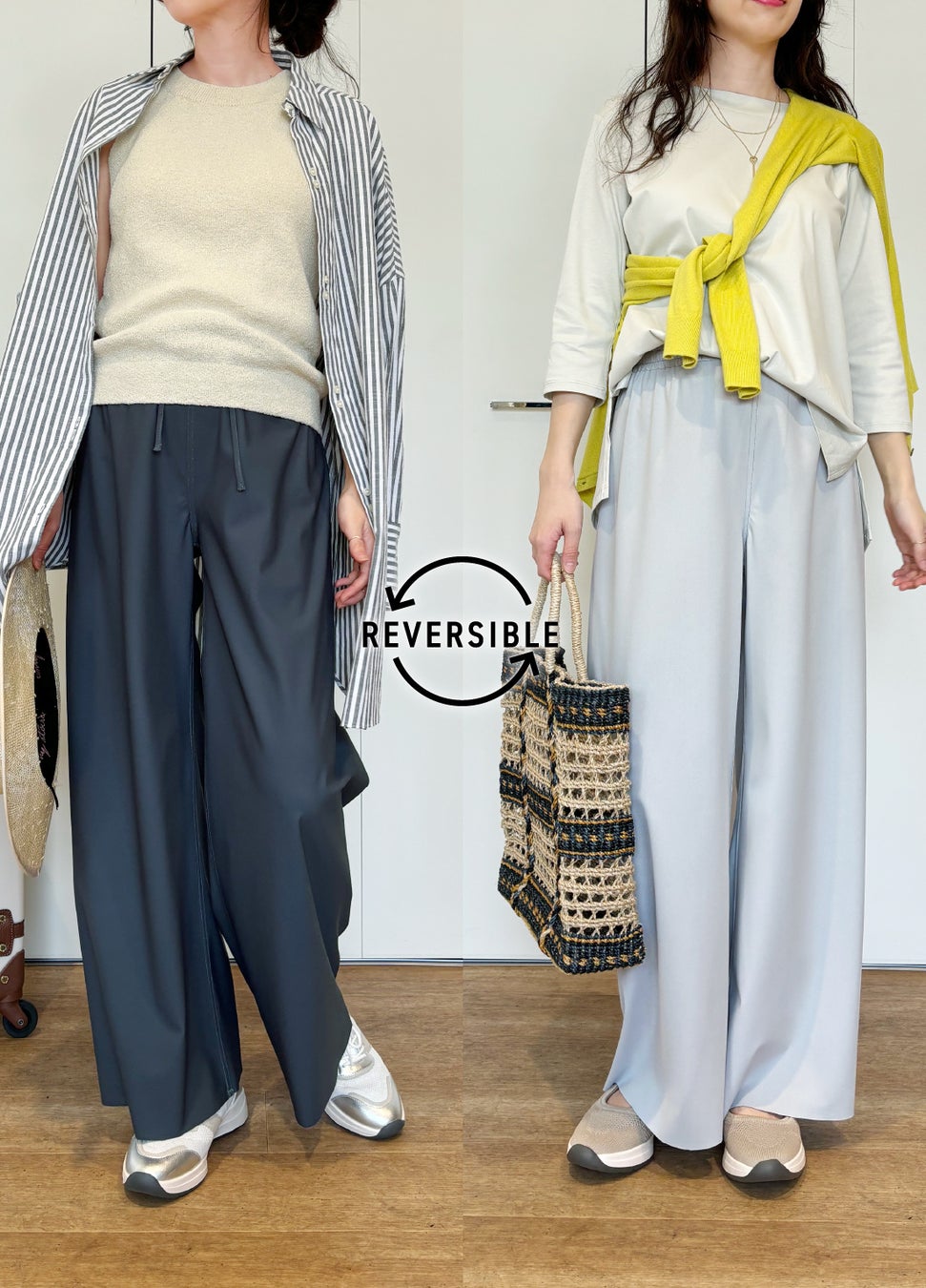 簡単にひっくり返せて、1本で2通りのコーデが楽しめます。旅先でもコーディネートの妥協はいりません。