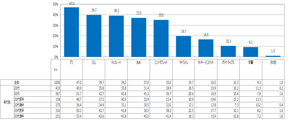 - グミを食べる理由は「気分転換」「集中力アップ」「手が汚れない」など