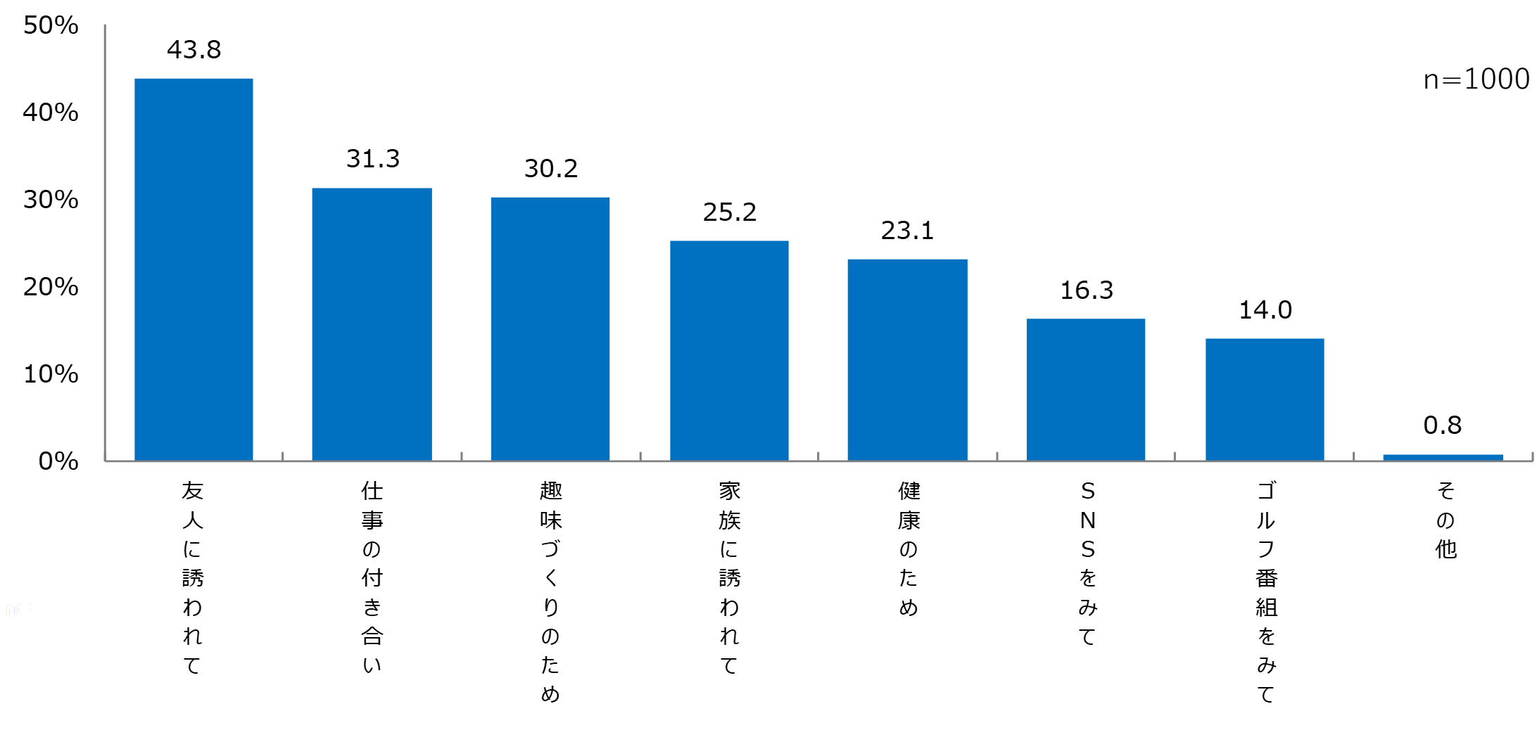 - ゴルフを始めたきっかけで最も多いのは「友人に誘われて」