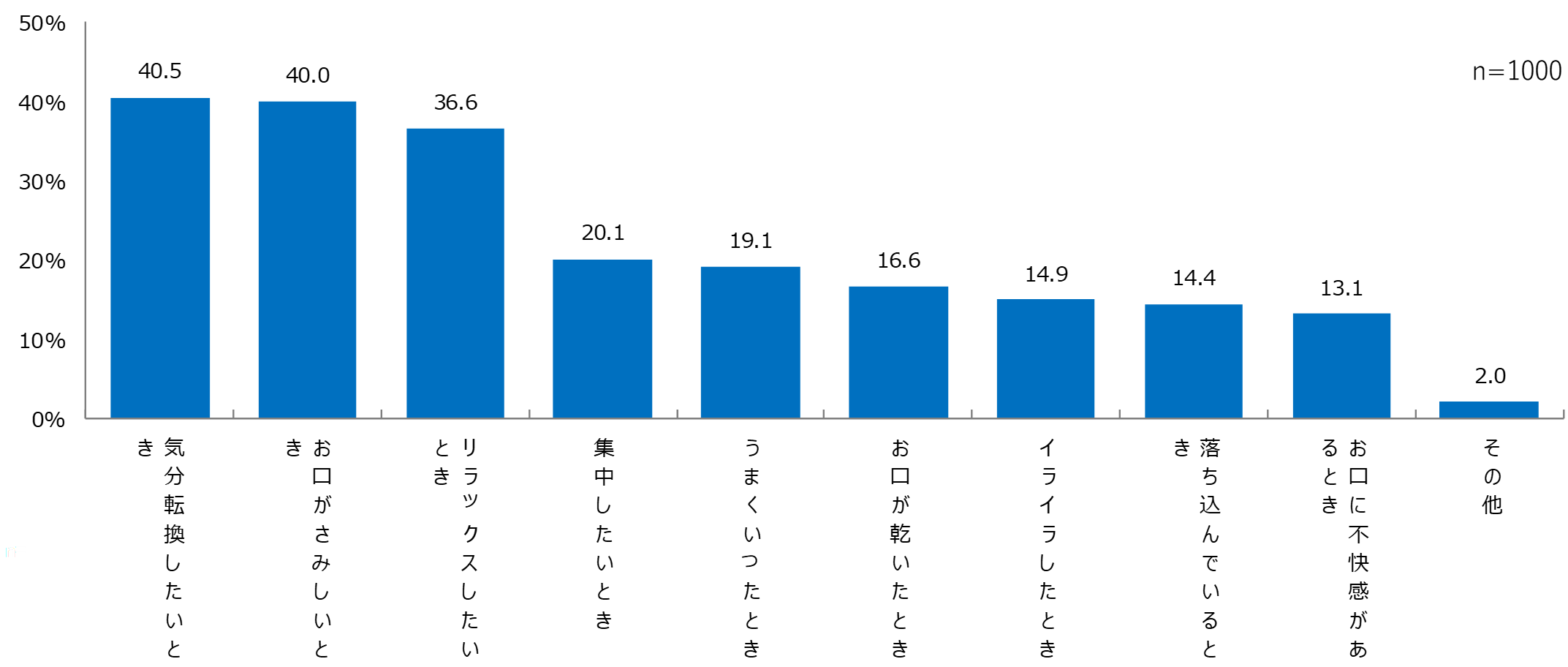 - 噛みごたえがあるから、気分転換になるため。 (34歳)