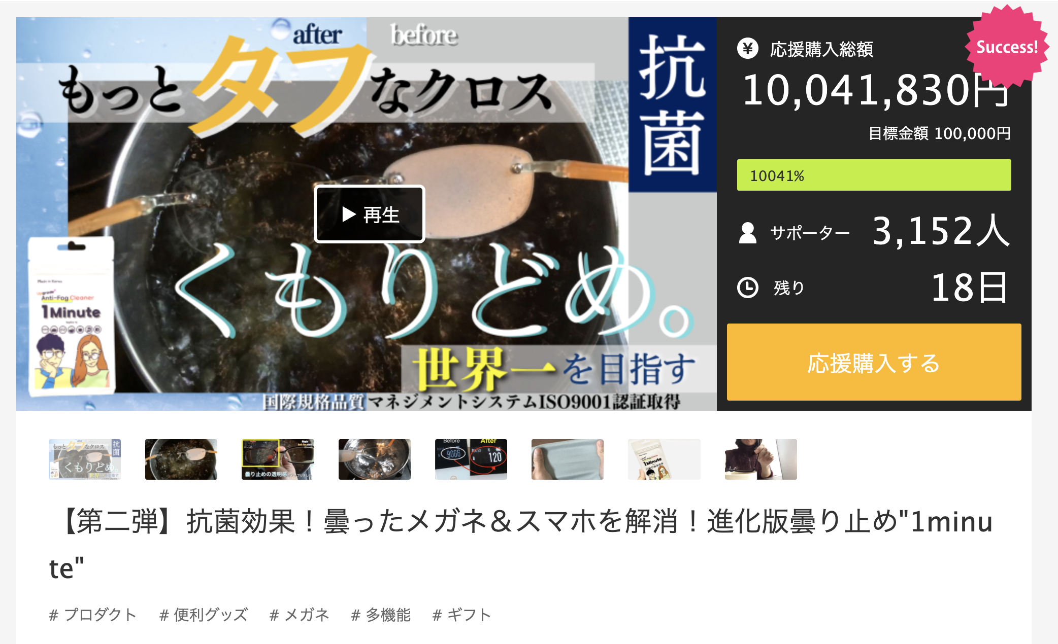 URL:https://www.makuake.com/project/1minute_anti-fog_cleaner/