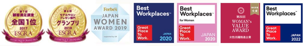 エステティックグランプリ 2020年、2017年、2016年、2013年 顧客満足部門 全国1位(史上初4度)