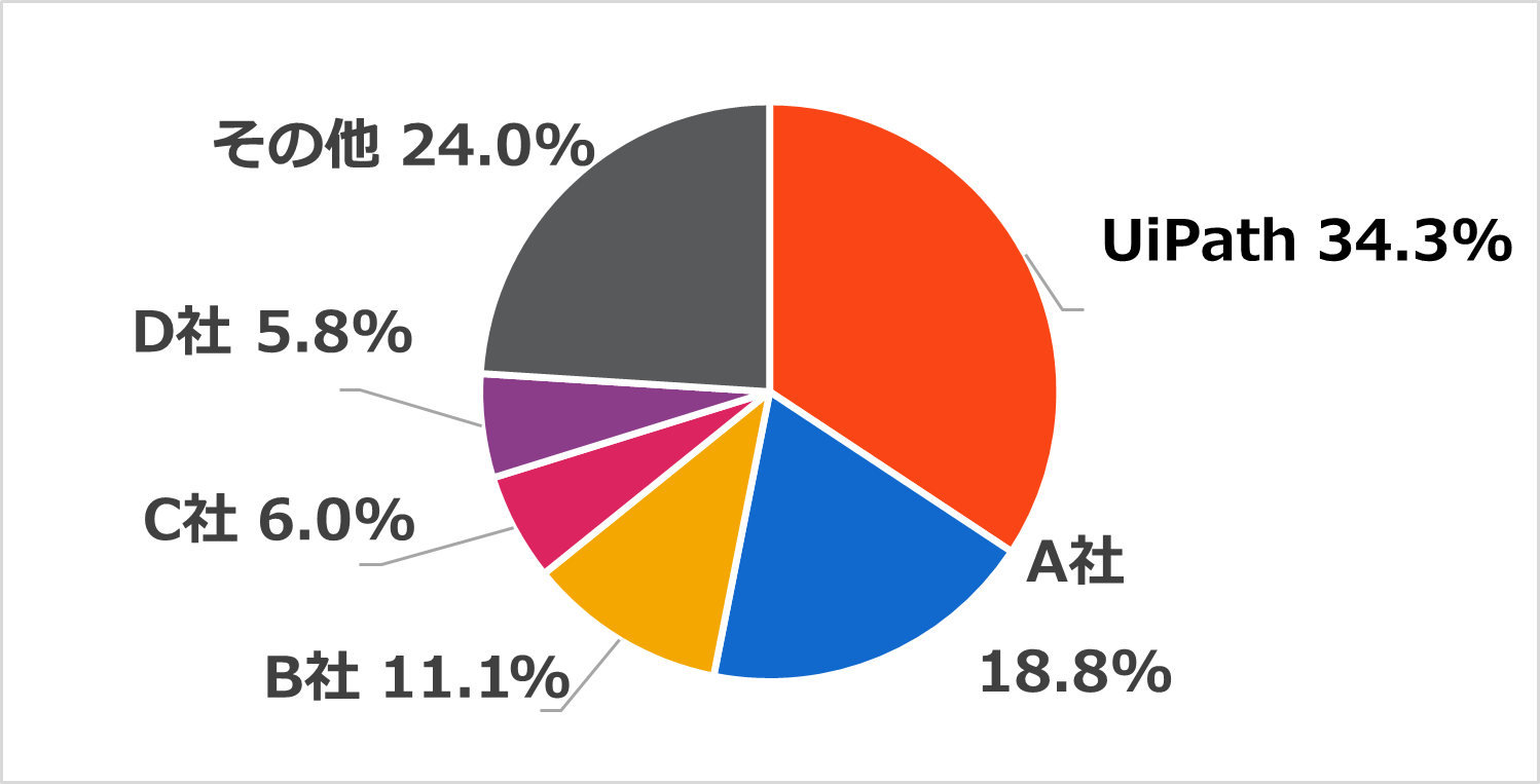 ITRの「ITR Market View:RPA/iPaaS/ワークフロー市場2023」によると、2022年度(2022年4月~2023年3月)の国内RPA市場の売上金額シェアで、UiPath社が第1位になりました。また、2023年度(2023年4月~2024年3月)の同市場でも、引き続きUiPath社が売上シェア第1位と予測されています。