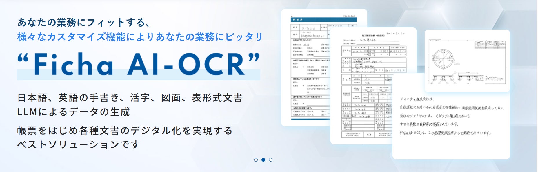 フィーチャ株式会社(本社所在地:東京都豊島区、代表取締役社長CEO:曹 暉)は、AI技術を活用した独自のOCRソリューション「Ficha AI-OCR」の公式サイト(https://ficha.jp/ai-ocr/)をリニューアルいたしました。今回のリニューアルでは、特定の業務に最適化された「オーダーメイドAI-OCR」の強みをより分かりやすく紹介し、実際の導入事例や新機能についても情報を充実させています。オンプレミス型の高セキュアな環境で運用できることに加え、大規模言語モデル(LLM)を活用した高度なテキスト処理にも対応しており、多様な業務の自動化・効率化を強力にサポートします。図面や地図のデジタル化等、他社サービスでは難しかった事項もご相談ください。