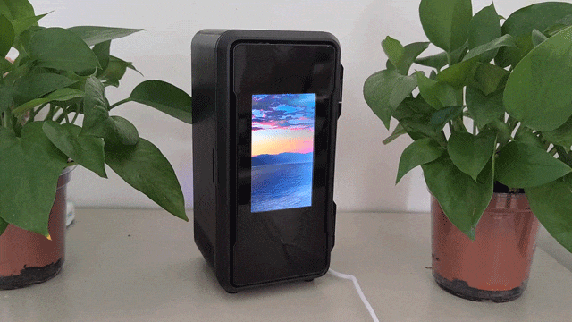 「Freshi」のドアには4.3インチのスクリーンがあります。PCで「Freshi」のストレージに写真や動画を入れることにより、スクリーンの画面は自由に設定できます。