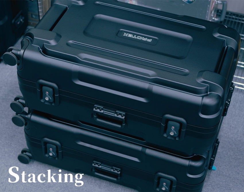 プロアスリートやクリエイター、官公庁にケースを開発・提供し続けてきた技術を結集。プロ用途での複数台運用を想定した、世のスーツケースには珍しい「段積=スタッキング」機能を備える。