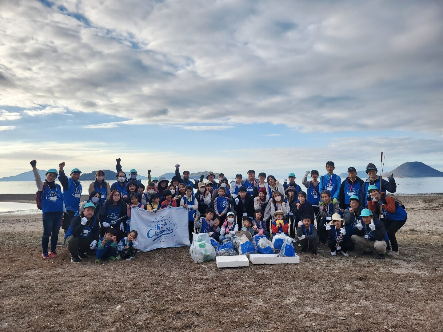 計3回実施された海岸清掃では、チームロゴが入ったお揃いのグッズを身に着けたかがわ海ごみリーダーとクリーナーズの皆さまにより、45リットルごみ袋が72袋回収されました。天候の関係でひときわ漂着物の多かった海岸では、一度に53袋も回収され見違えるほど海岸がきれいになりました。