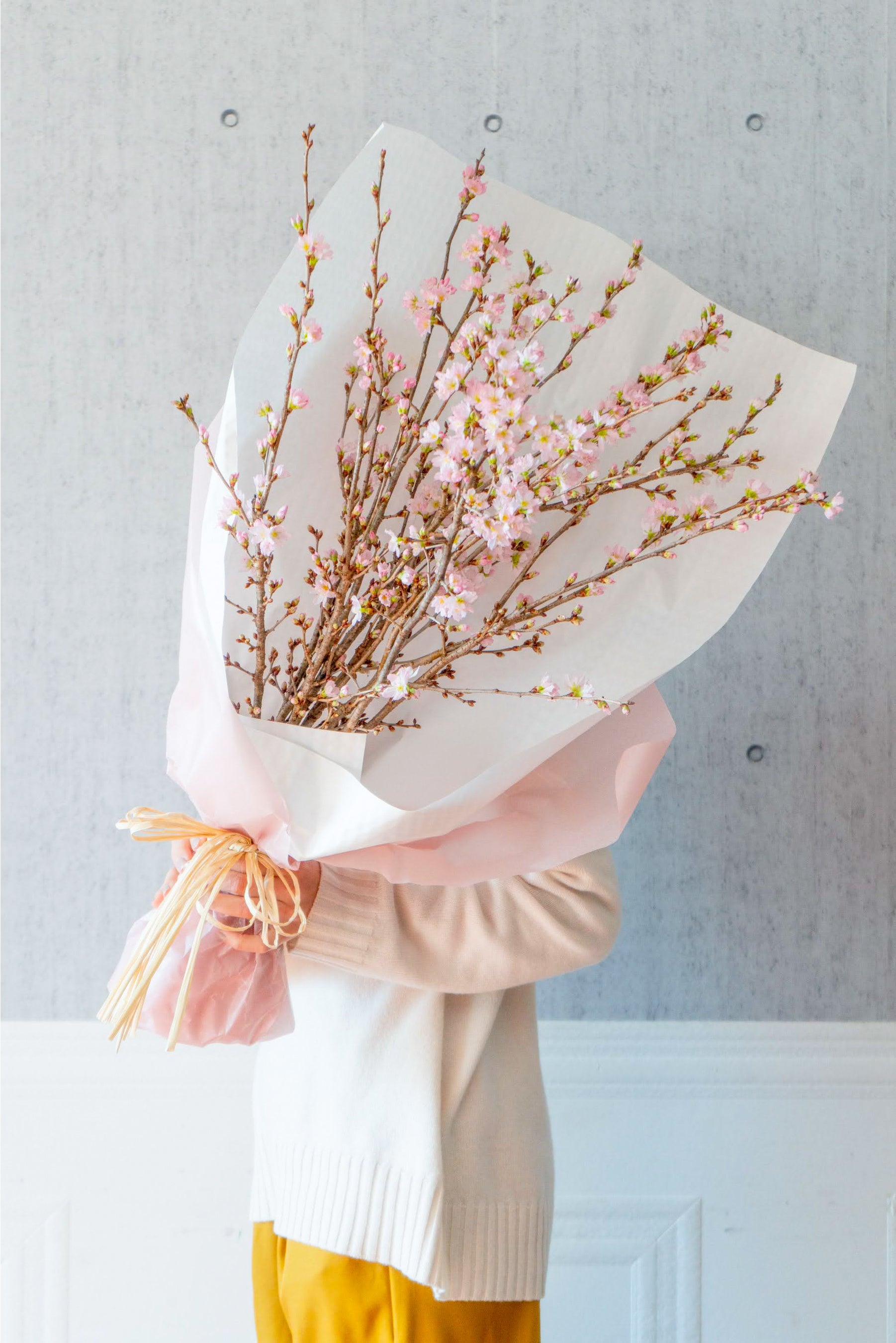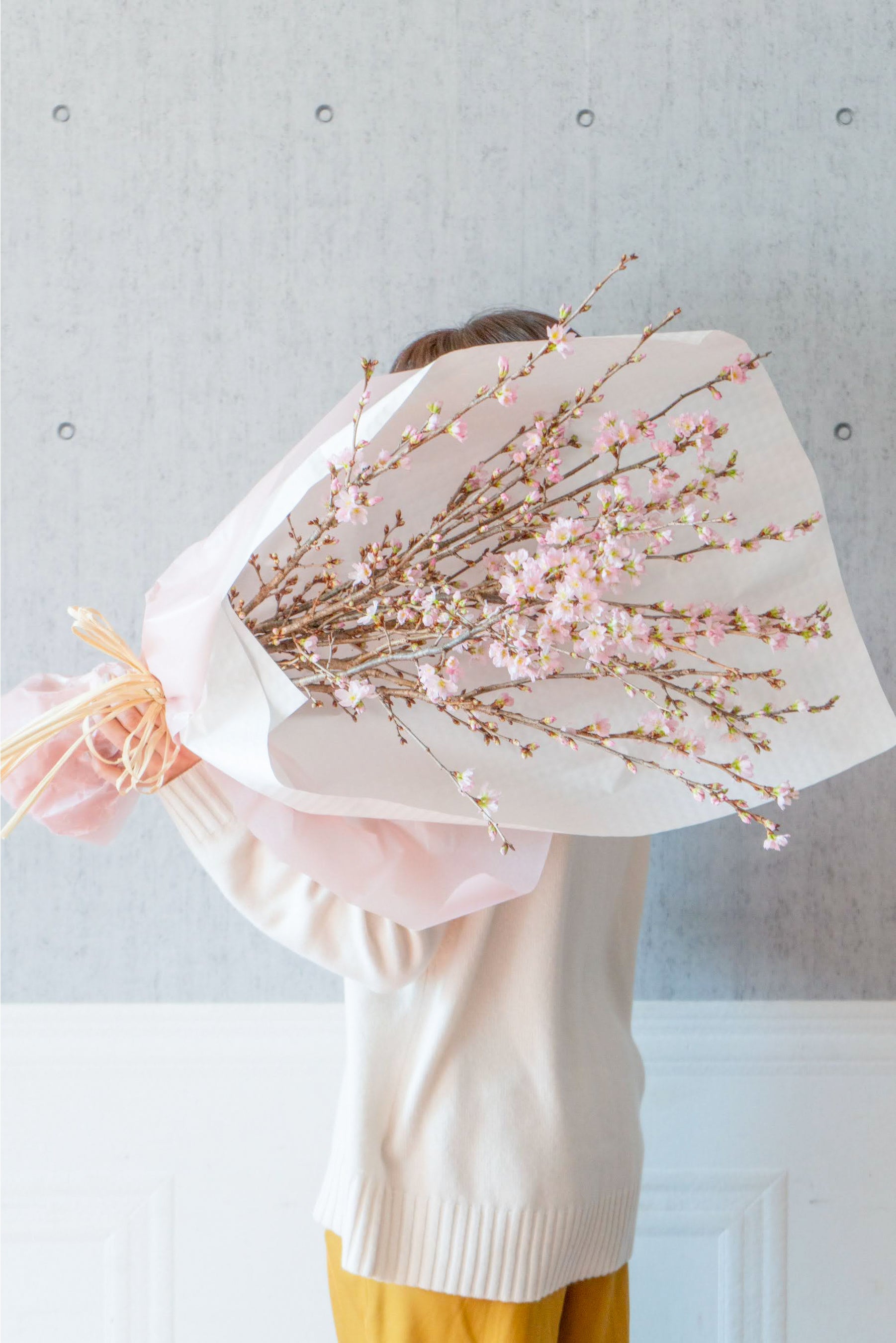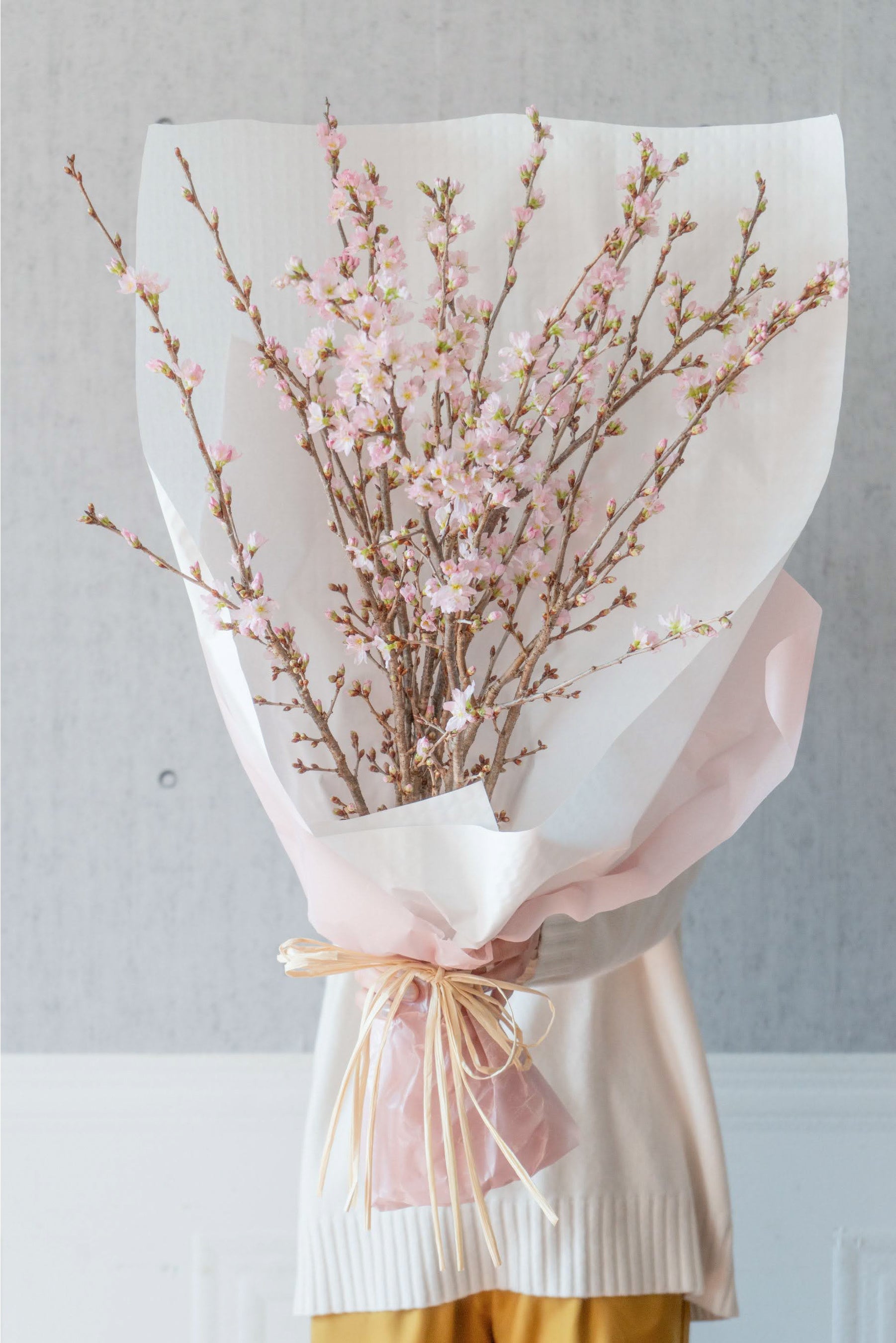 おうちを桜でいっぱいに、桜10本の「おうち花見」" 桜 "の枝60cm 10本セットを春めいたラッピングでお届け!