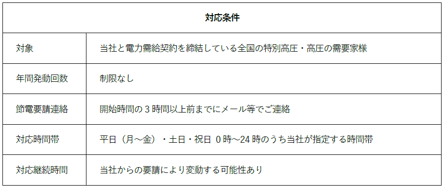 ・当社からの節電のお願いに応じて、電力消費を抑制していただきます。