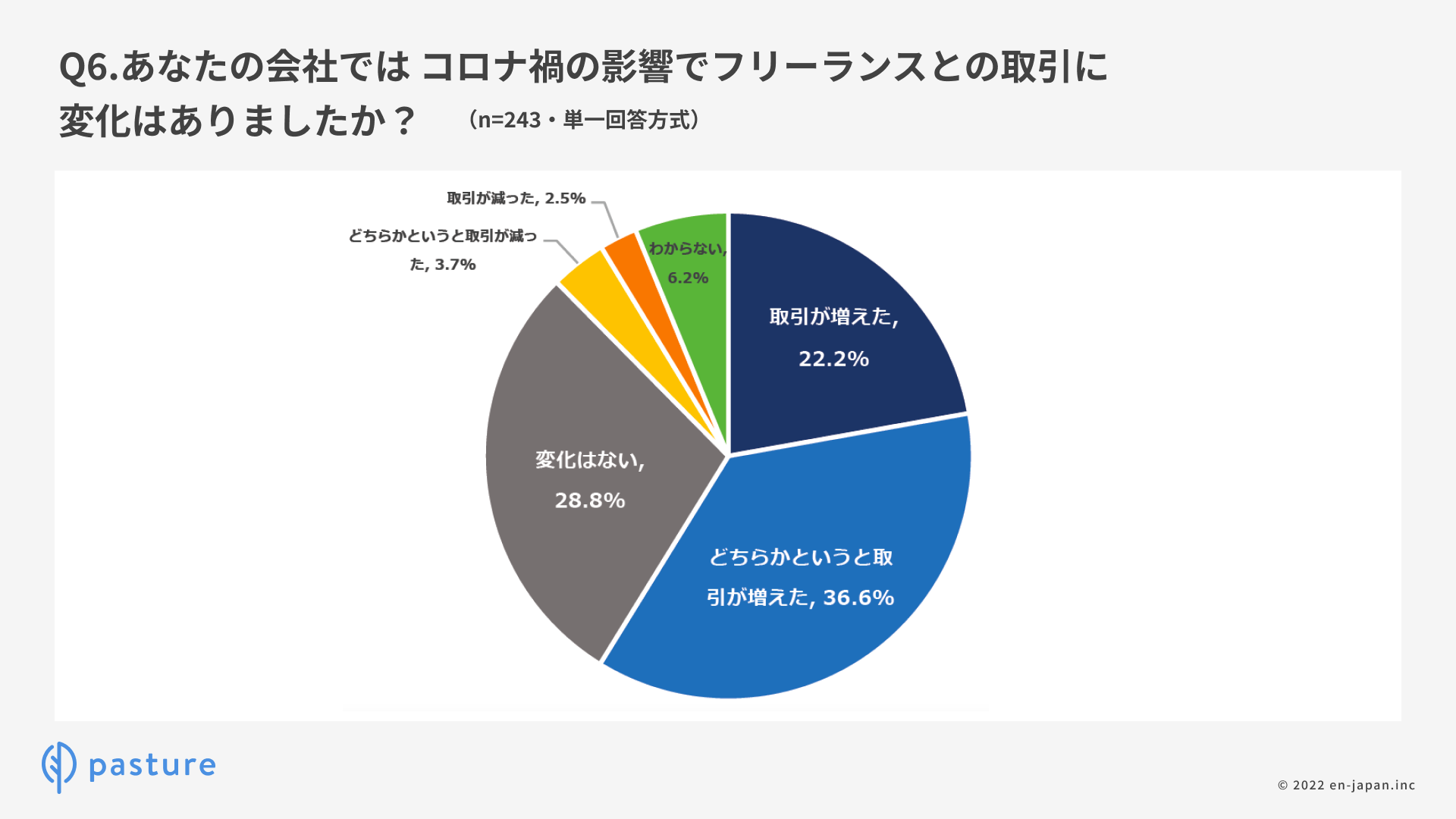 Q6.あなたの会社では、コロナ禍の影響でフリーランスとの取引に変化はありましたか?(n=243・単一回答方式)