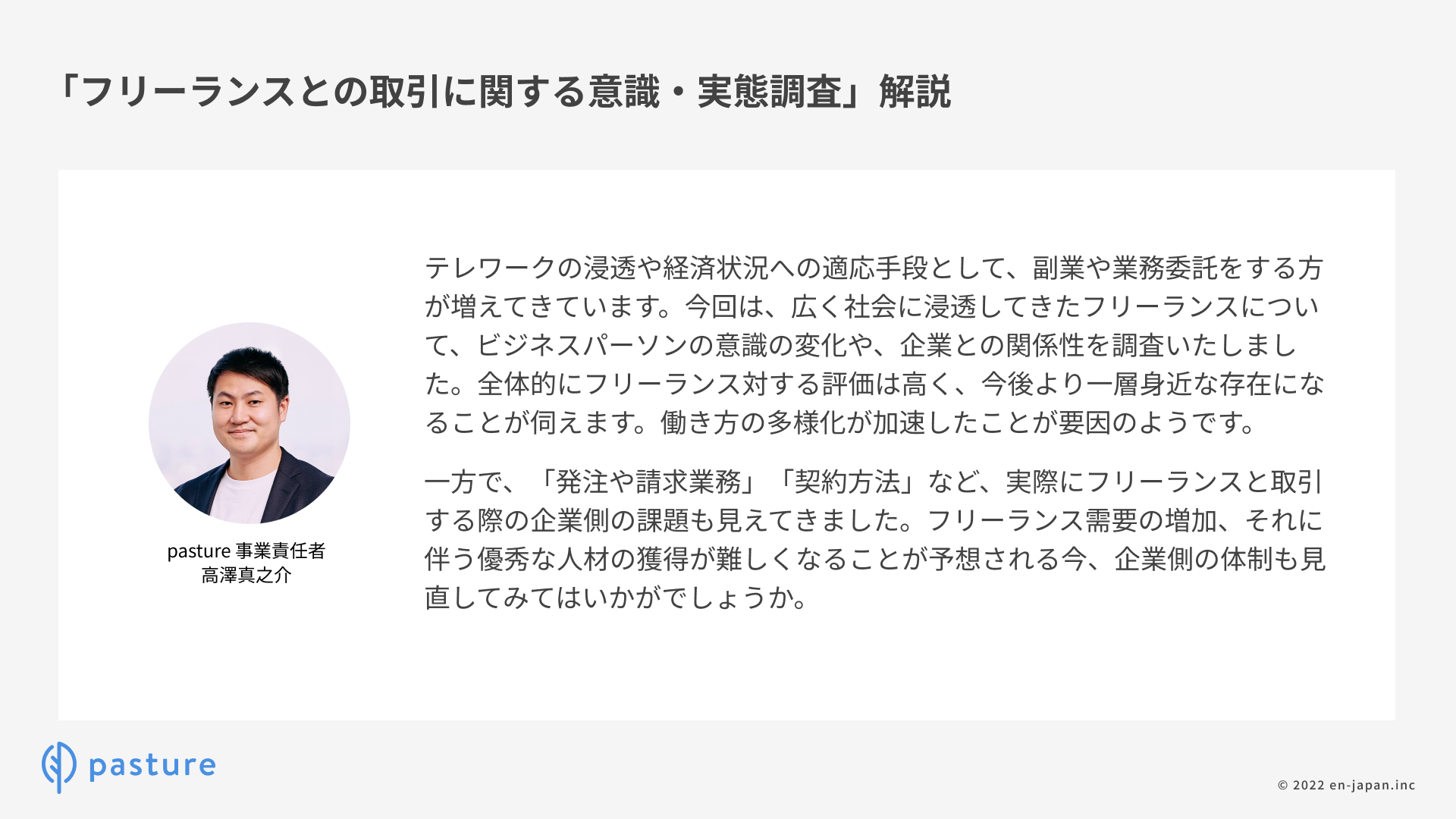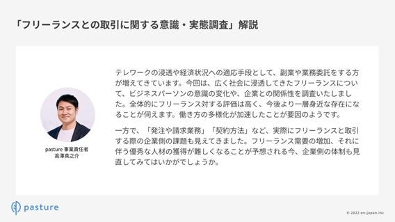 ビジネスパーソンの約6割がフリーランスの需要が増えると予測 pasture(パスチャー)調べ 「フリーランスとの取引に関する意識・実態調査」