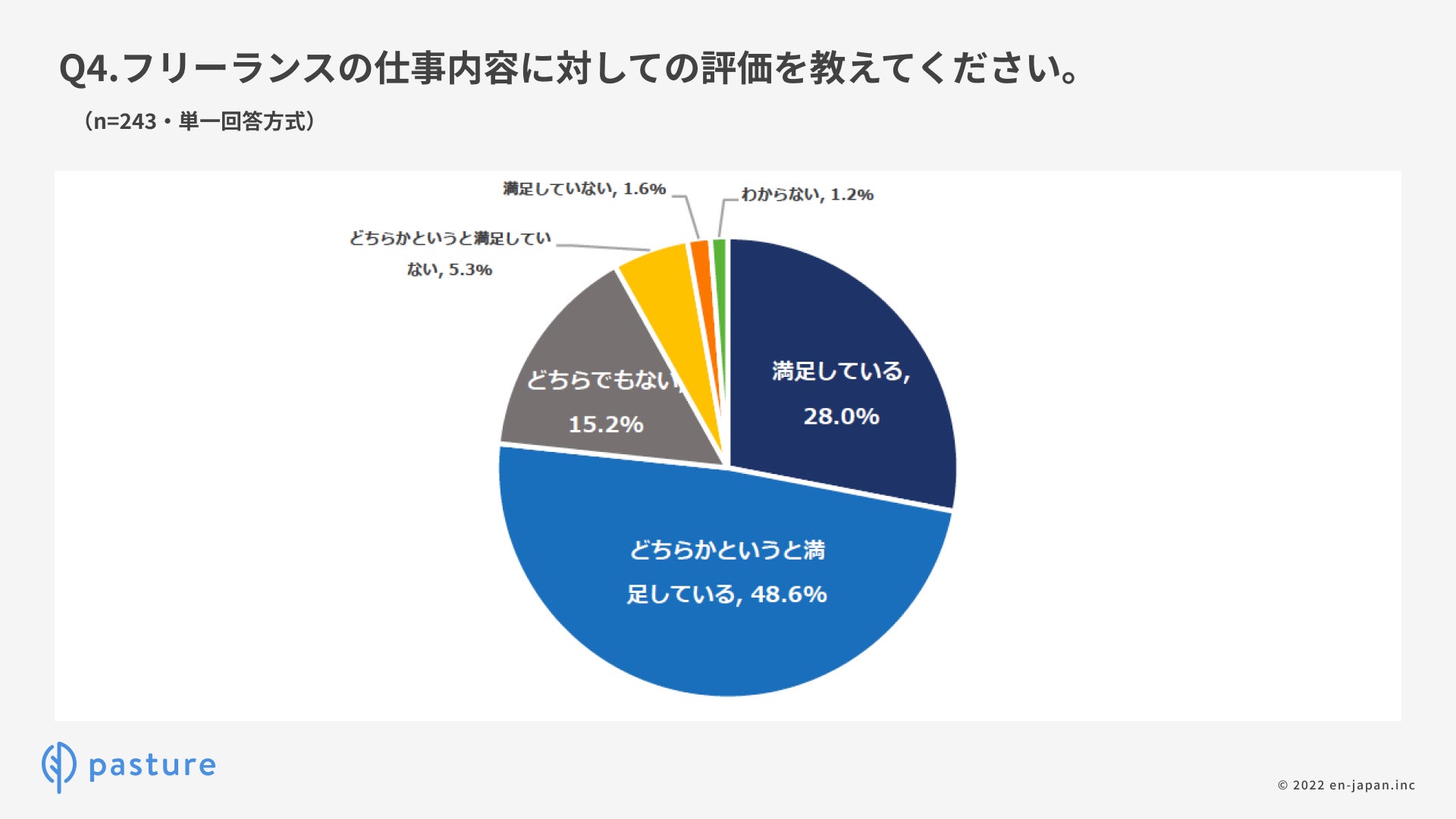 Q4.フリーランスの仕事内容に対しての評価を教えてください。(n=243・単一回答方式)