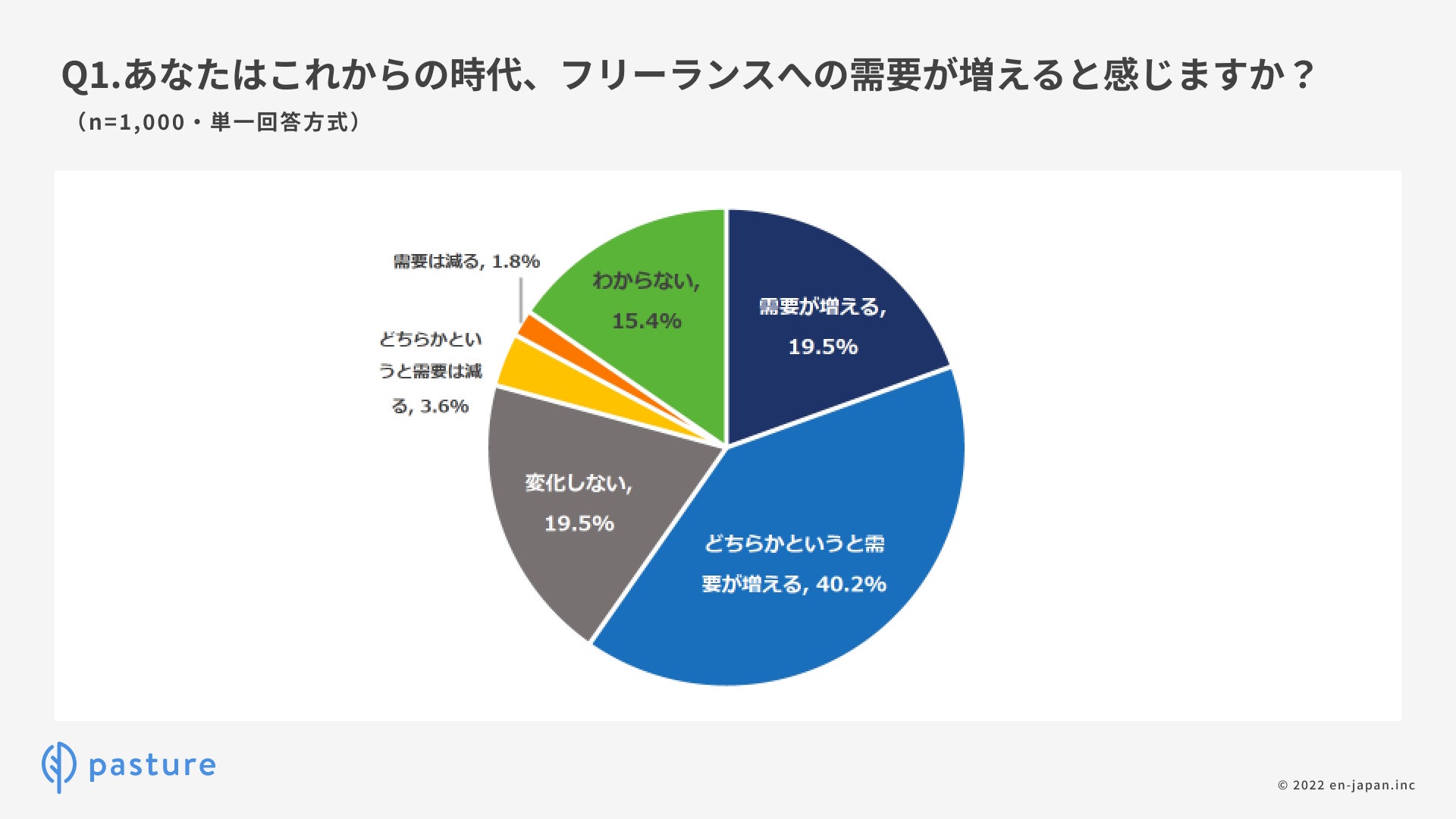 Q1.あなたはこれからの時代、フリーランスへの需要が増えると感じますか?(n=1,000・単一回答方式)