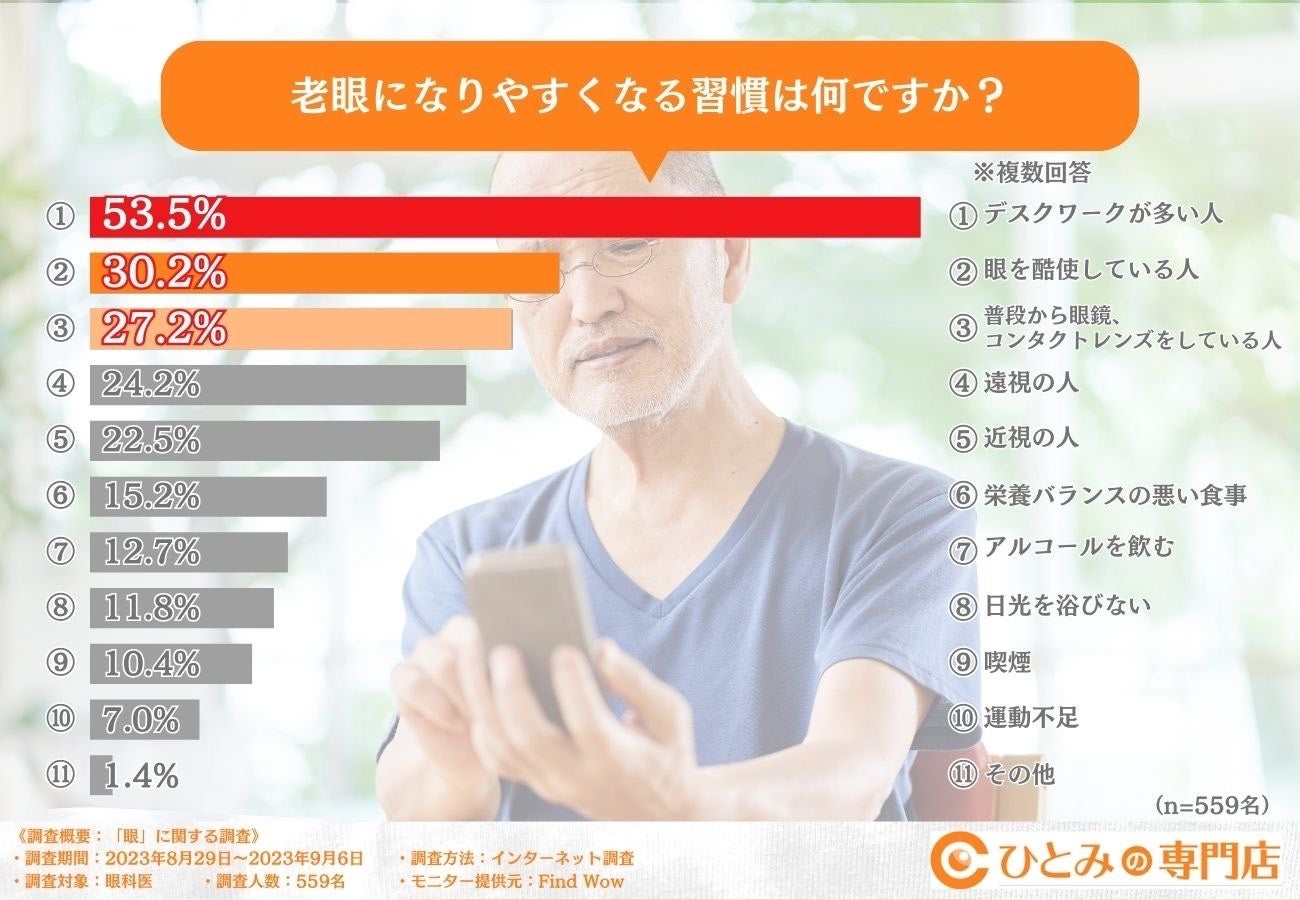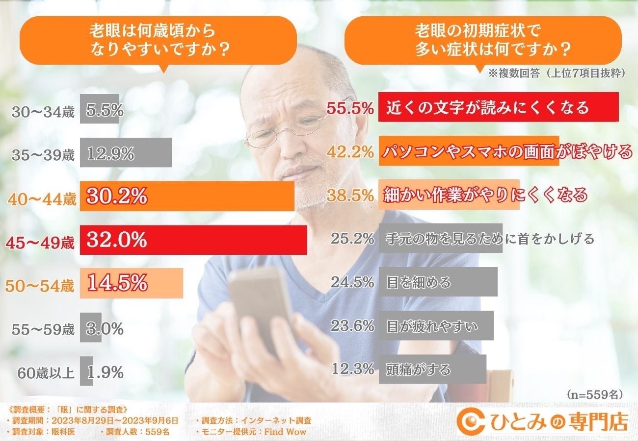 そこで今回、ひとみの専門店を運営する一般社団法人健康長寿(https://ehitomi.com/)は、全国の眼科医を対象に「老眼」に関する調査を実施しました。