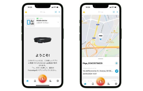 本製品は、専用アプリ「D-Alert」に対応しており、スマートフォンと接続することでデバイスを認識します。万が一転倒の際、アプリを通じて事前に登録した緊急連絡先に緊急通知(エマージェンシーコール)を発信することができますので、安心して見守ることができます。
