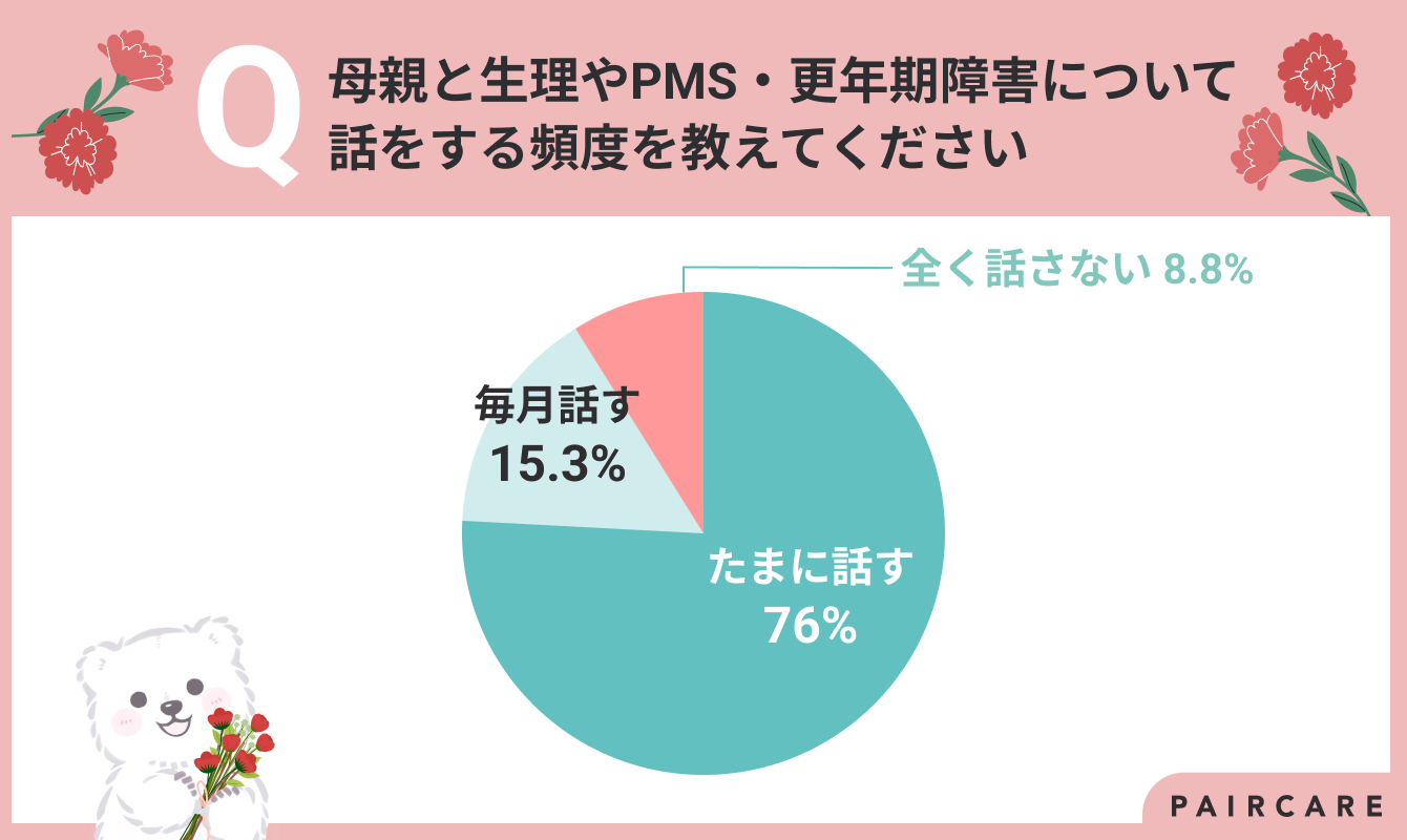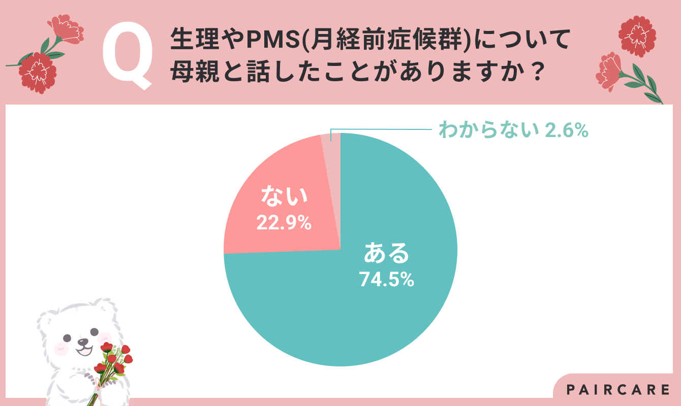 - 7割の女性が生理やPMS(月経前症候群)について母親と話したことがある