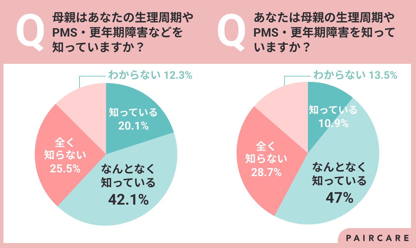 - 母親の生理周期やPMS・更年期障害を知っている女性は4割