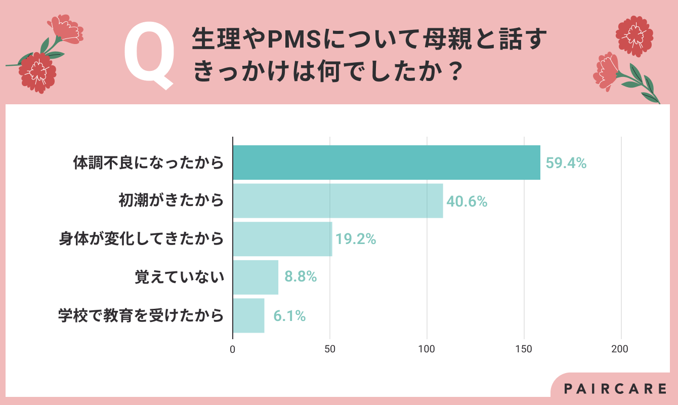 - 生理やPMSについて母親と話すきっかけは「体調不良」