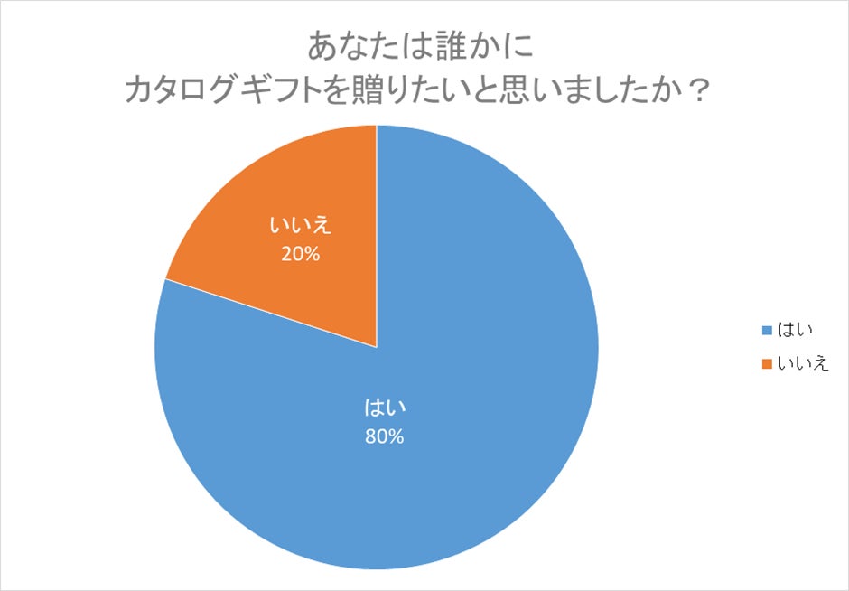 「あなたはカタログギフトを誰かに贈りたいと思いましたか?」という質問に対しては、8割の方が「はい」と回答しました。