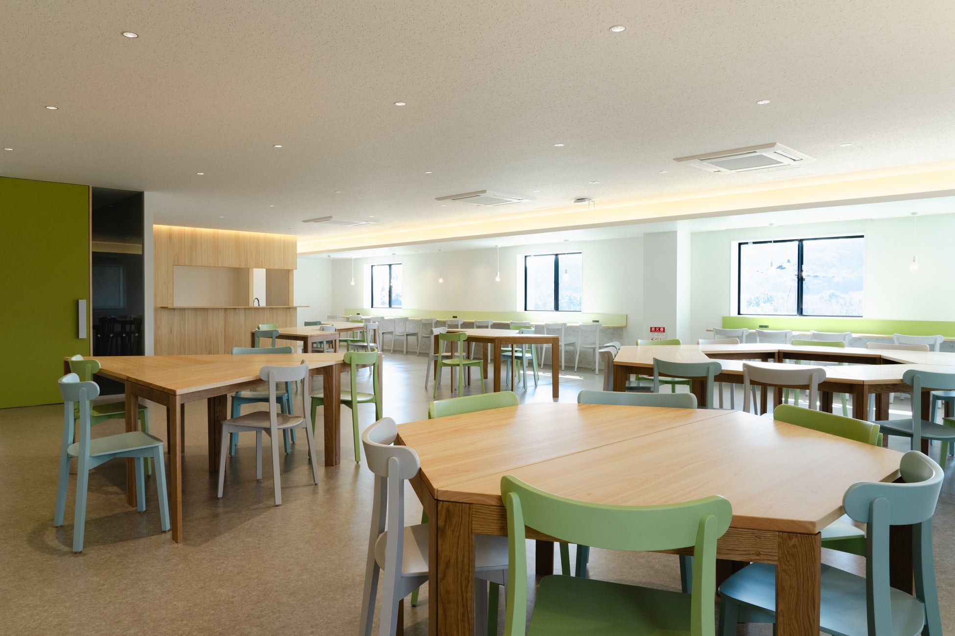 白鷺ニット工業株式会社の福崎ファクトリーは2000年に開設して以降、初のリノベーションとなる。本拠点の南東にある事務所棟のエリアが対象で、1階のオフィスおよび展示スペースや2階の食堂、撮影スタジオが一新され、新しい活動の拠点として生まれ変わった。
