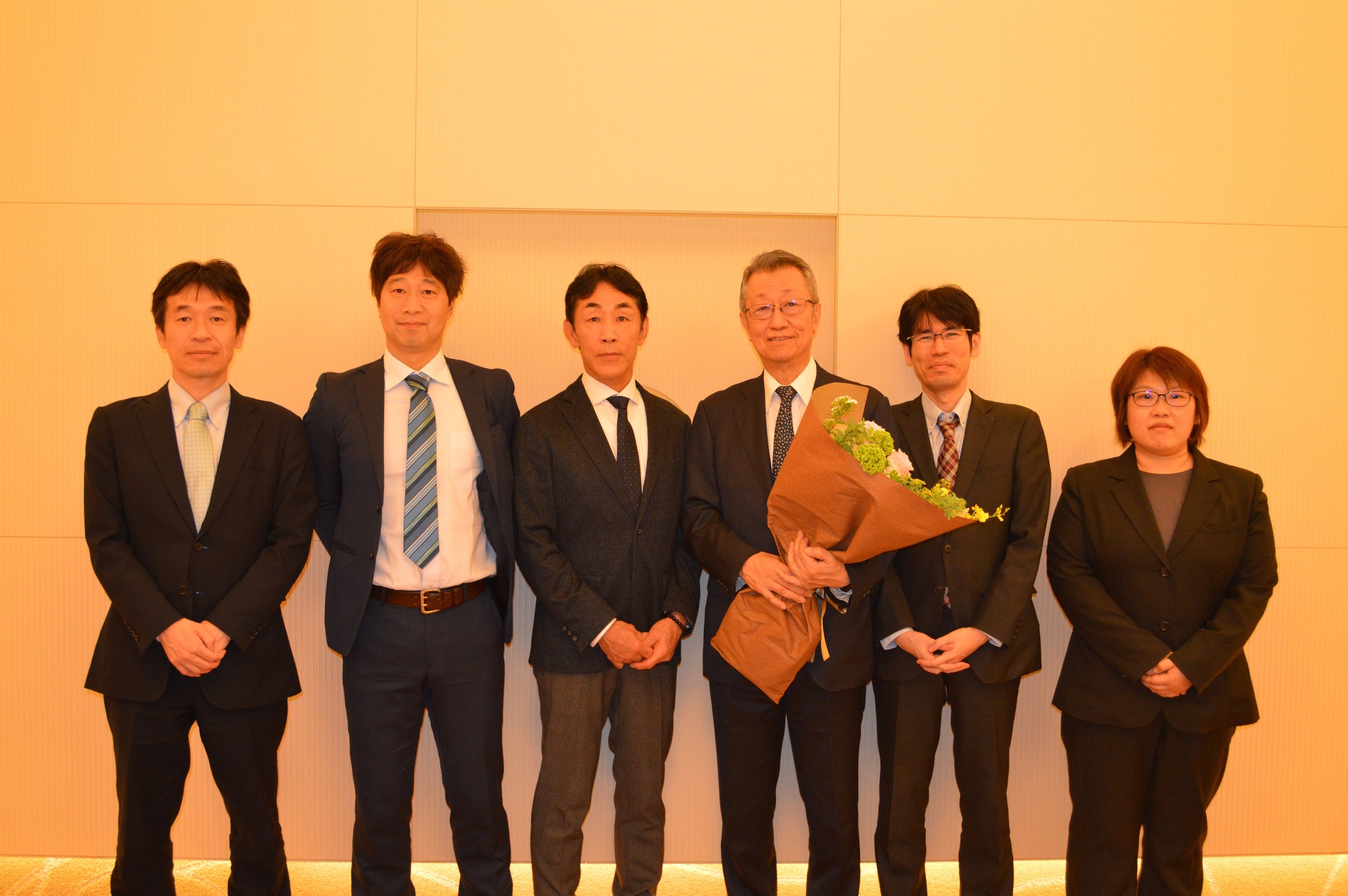 調印式に参加した(左から)パワーソリューションズの老川、加藤、藤田、ミニコンデジタルワークの田淵さん、川島さん、竹本さん