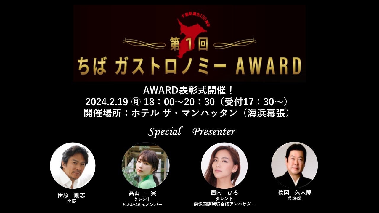 また、二次審査を経て、各部門TOP30から大賞・特別賞を表彰する第1回「ちばガストロノミーAWARD発表・表彰式」を2024年2月19日(月)に千葉市美浜区のホテル ザ・マンハッタンにて開催致します。