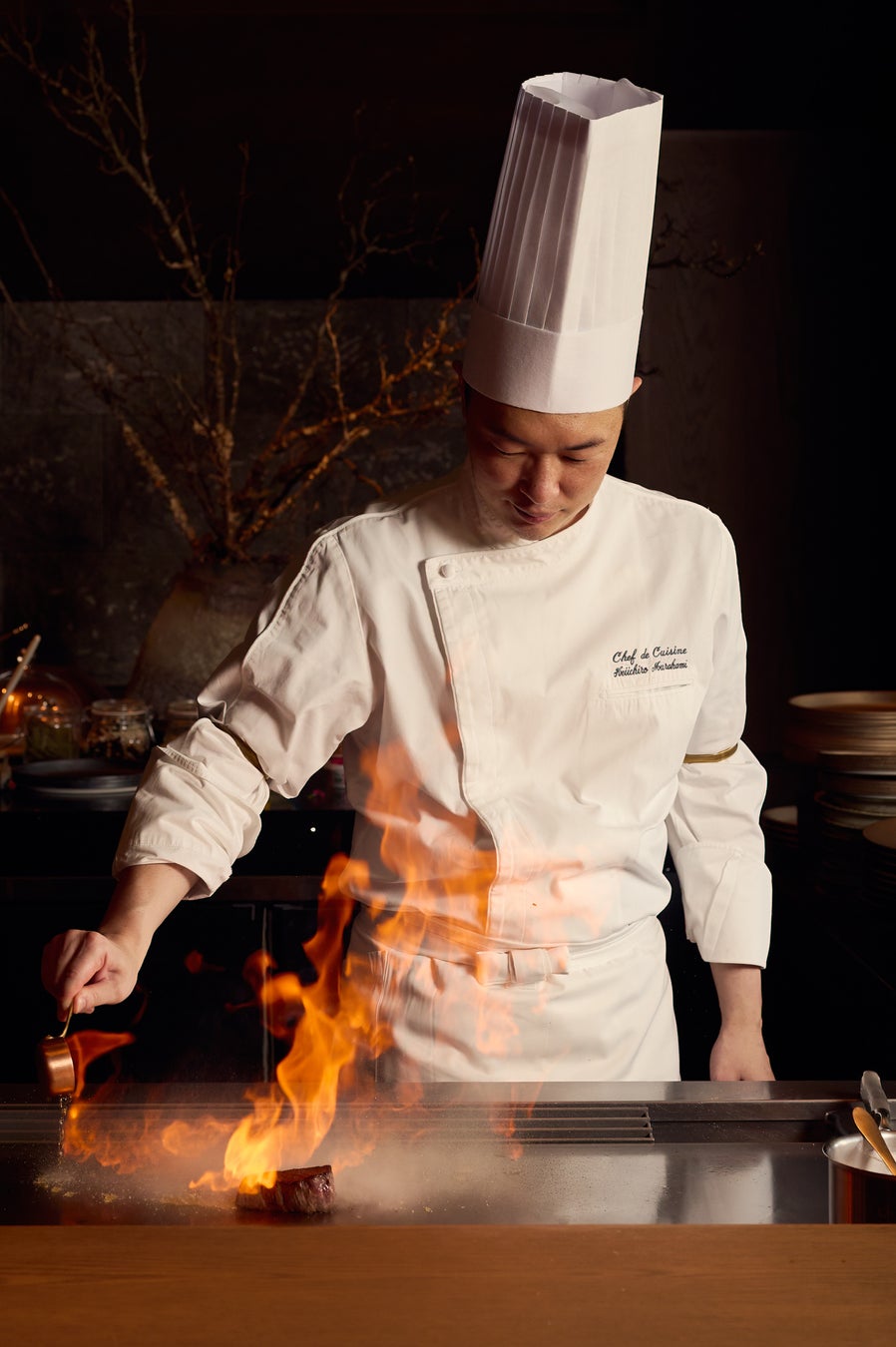 パーク ハイアット ニセコの鉄板は、フランス料理出身のシェフが作り上げるフレンチの要素を取り入れたユニークでエレガントなお料理が特徴です。西洋野菜や、ピューレ、香りにこだわった一品一品と、鉄板で作り上げるデザートはこれまでにない体験となるでしょう。