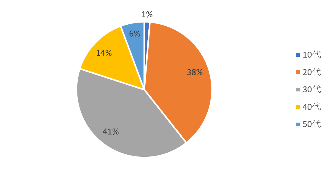 カラコン購入者の年代については「30代」が41パーセント、僅差で「20代」が38パーセントと続きました。20-30代だけで全体の約8割を占めています。そこからやや差はありますが、次いで「40代」が14パーセント、「50代」が6パーセントと40-50代も購入者全体の2割を担っており、軽視できない存在となっています。