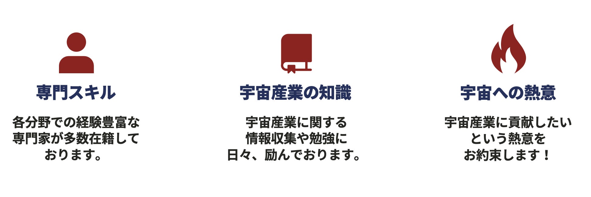 確かな専門スキルはもちろんのこと、宇宙産業に対する強い熱意で、お客様の宇宙ビジネスに貢献することをお約束します。