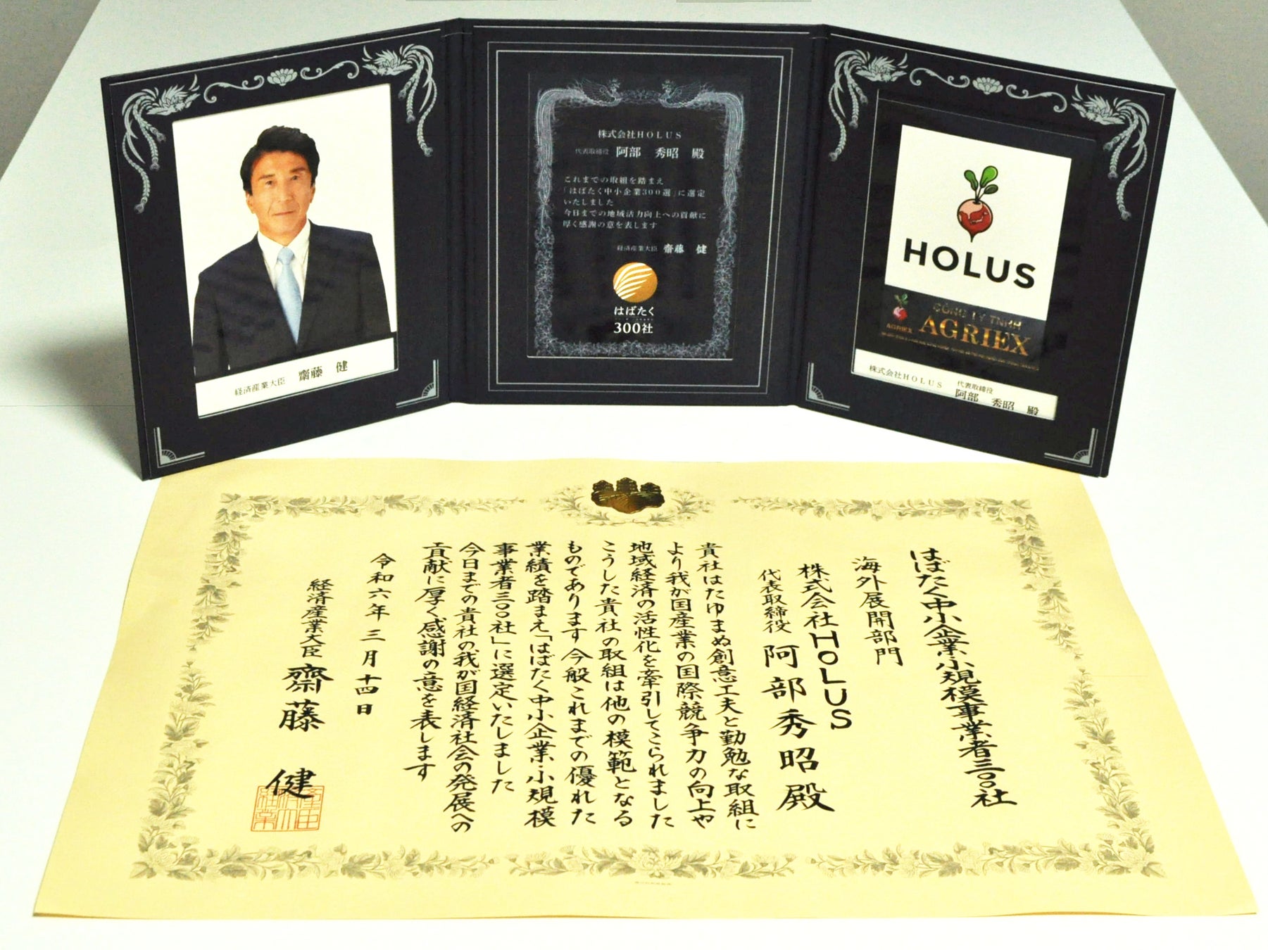 日本農家と共にベトナムで農業および食品製造を手がけ、日本での輸入と販売を行っている株式会社HOLUS(東京都渋谷区、代表取締役:阿部秀昭、以下、HOLUS(ホーラス))は、経済産業省・ 中小企業庁が選定する2023年度の「はばたく中小企業・小規模事業者300社」に選定され、3月14日(木)に経済産業省で行われた表彰式で、齋藤健・経済産業大臣より表彰を受けました。