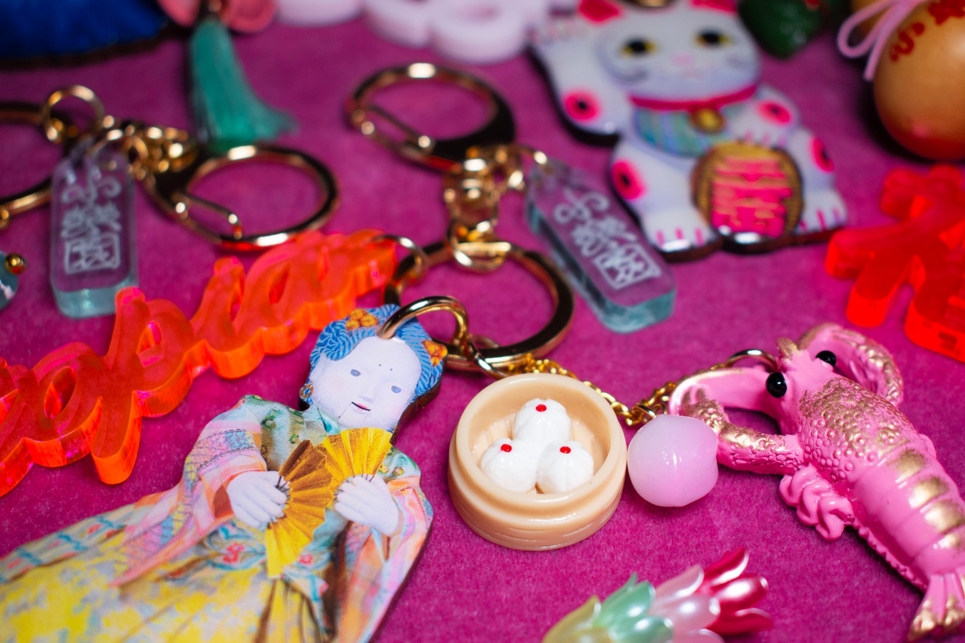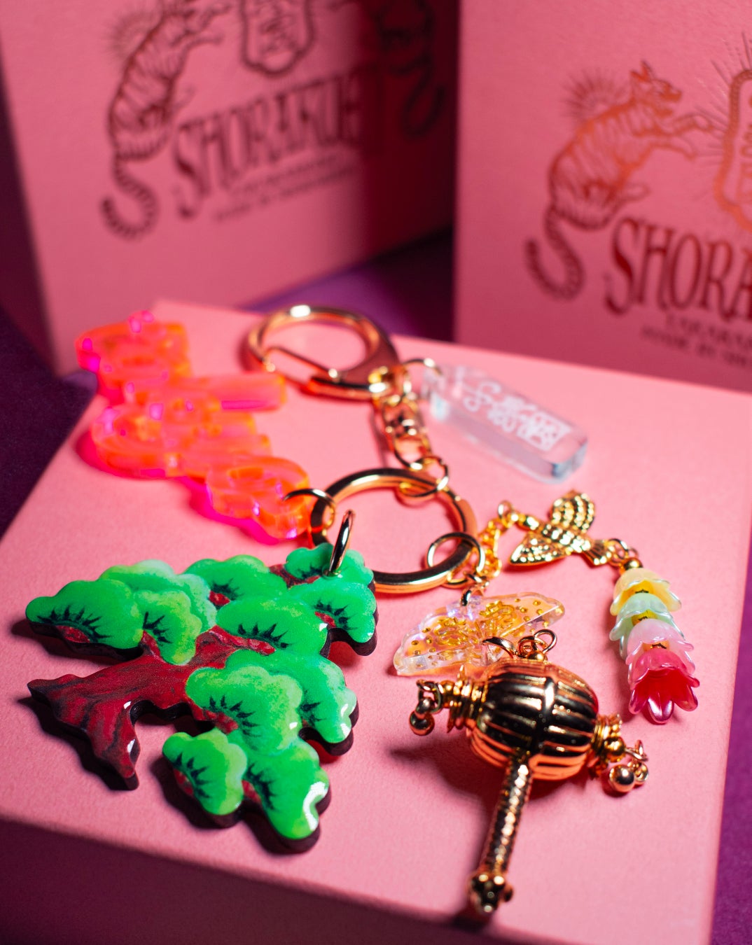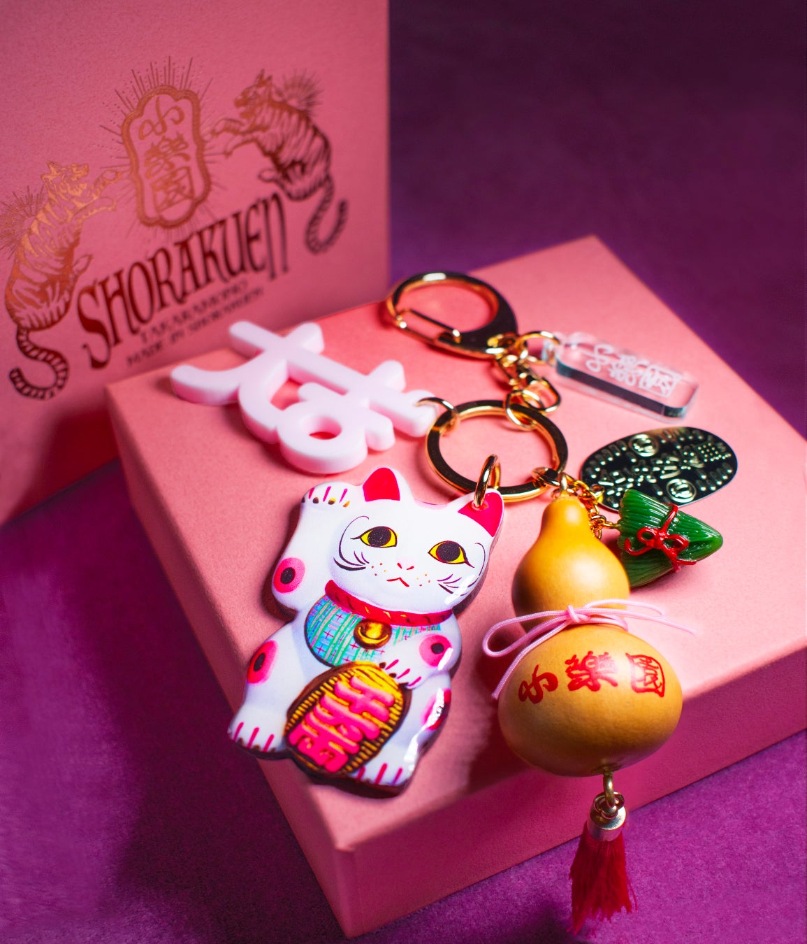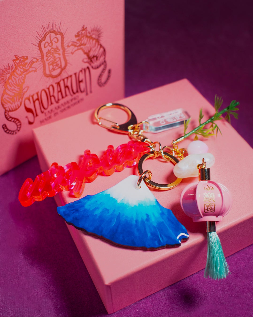 「桃源郷のお土産屋」に並んでいそうな...をコンセプトに作った小楽園の「OMIYAGEキーホルダー」。招き猫や松、信楽たぬきなどの日本らしいモチーフや、富士山をはじめとする日本の山々、瓢箪、茶運び人形などがモチーフに。日本らしくもどこか逆輸入したかのようなネジのはずれたテイストが小楽園らしい、アイコニックな楽しいコレクション。開運モチーフも多いので、ラッキーチャームとして持つのもおすすめです。