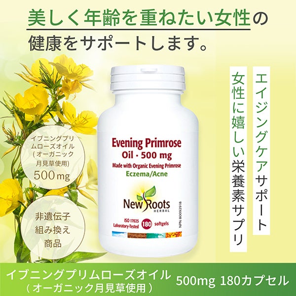 イブニングプリムローズオイル(オーガニック月見草使用) 500mg 180カプセル