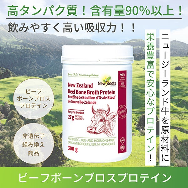 ニュールーツハーバルのビーフボーンブロスプロテインは、タンパク質含有量が90%以上。脂肪および糖質0%のため、効果的にタンパク質を吸収したい方、脂質や脂肪のないプロテインをお探しの方に利用されています。