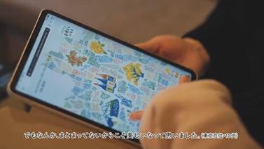 画面を指先で拡げていくと、福島県民およそ200人による「ふくしま」を表現した言葉が散りばめられていることがわかります。