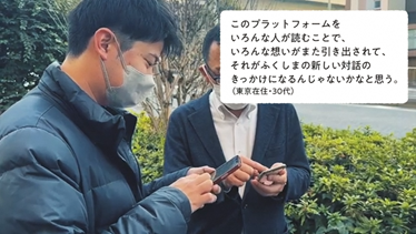 このプラットフォームをいろんな人が読むことで、いろんな想いがまた引き出されて、それがふくしまの新しい対話のきっかけになるんじゃないかなと思う。(東京在住・30代)