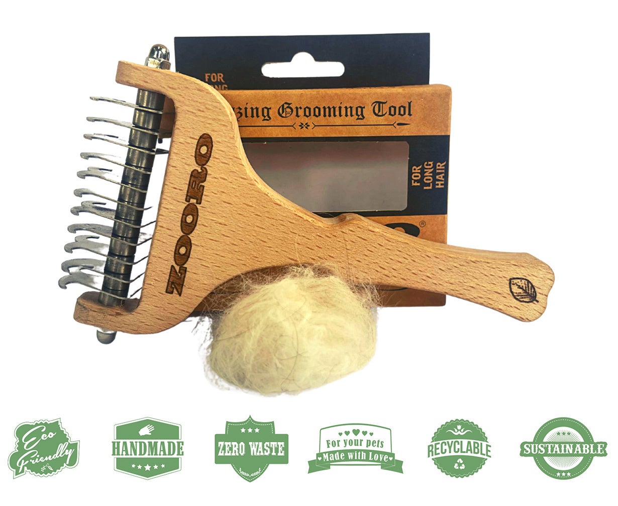 ごっそり取れると大好評のゾログルーミングコームから長毛用がついに登場!2種類の丸いブレード設計により、より幅広い毛並みのペットに使用可能、Makuakeで10月30日まで先行販売中