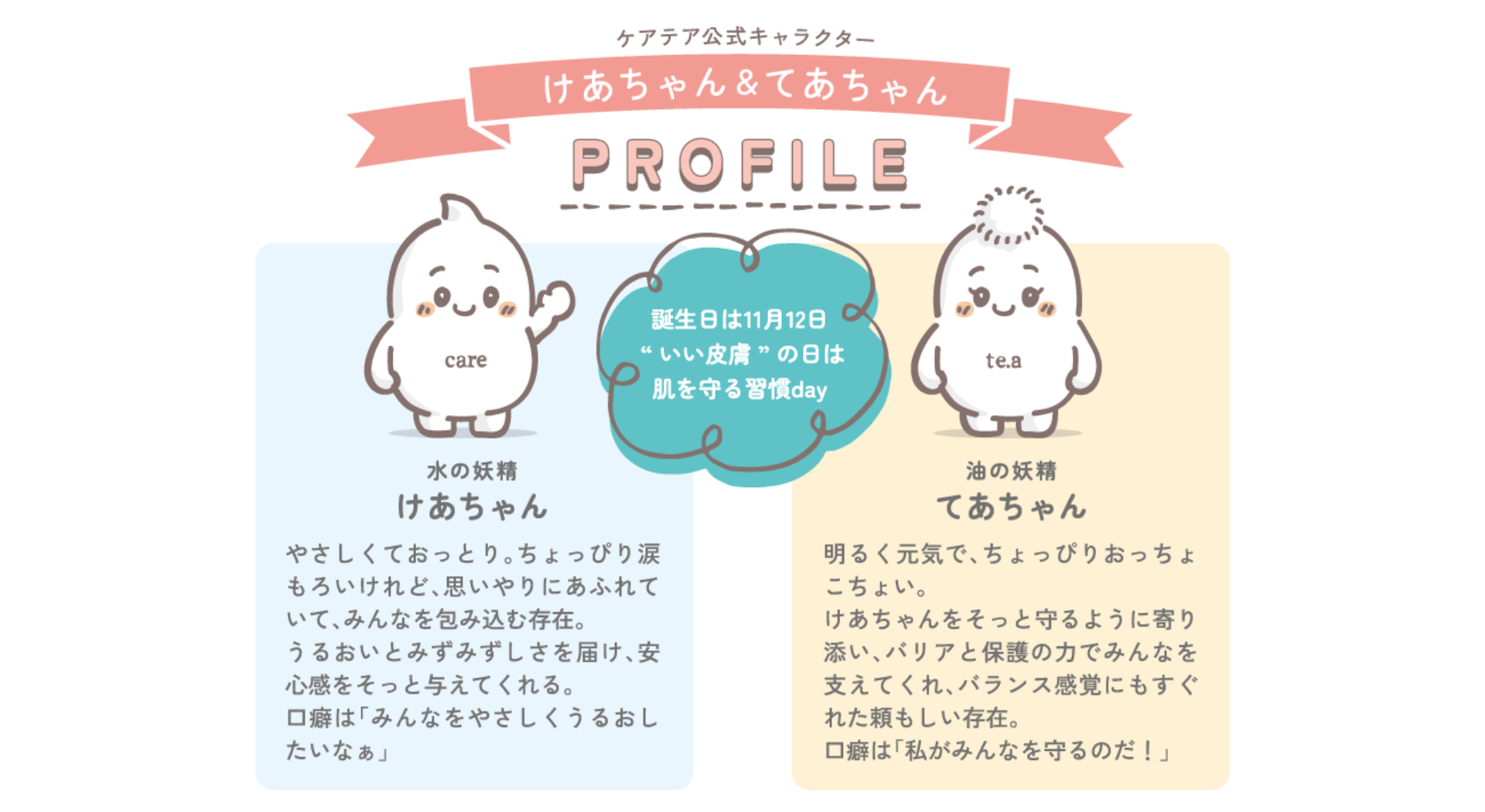 元看護師が手がけるスキンケアブランド「CARE・TE・A」より公式キャラクター「けあちゃん・てあちゃん」が誕生