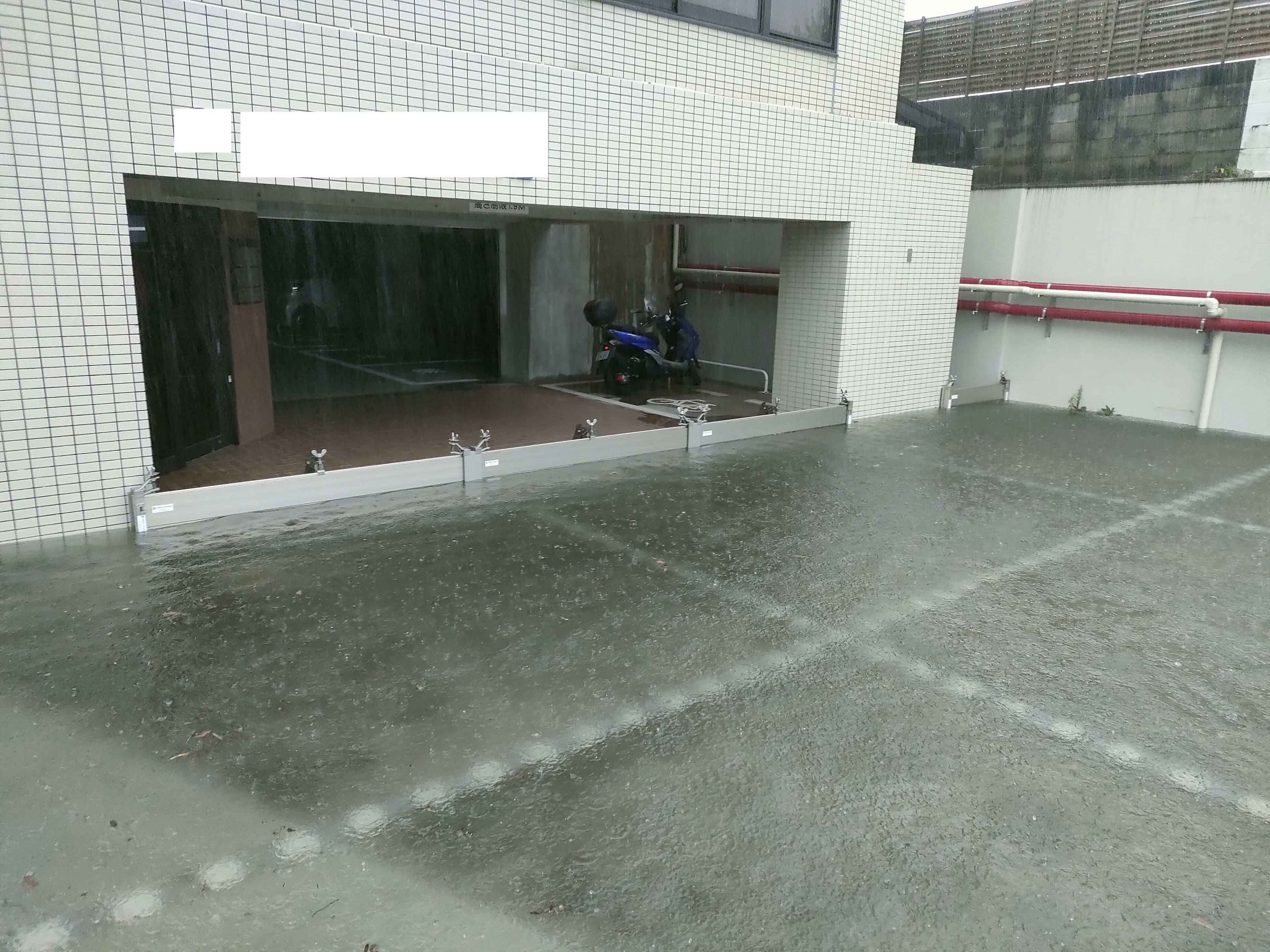 軽量なアルミ製止水板(防水板)の設置で豪雨時の浸水に効果抜群!