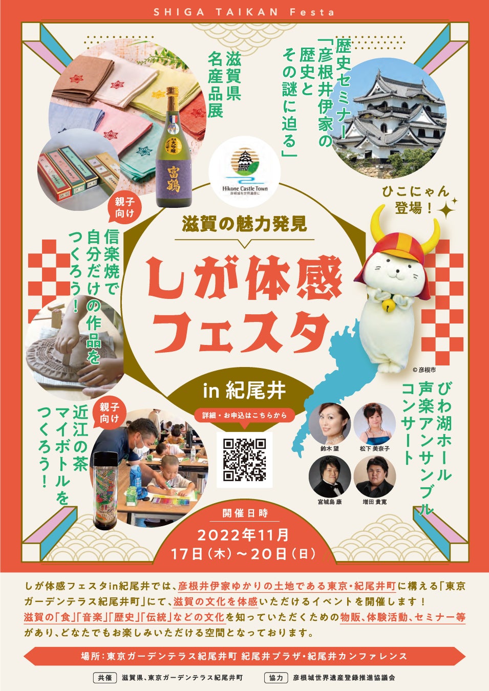 首都圏における滋賀の魅力発信イベント「しが体感フェスタin紀尾井」を開催します!