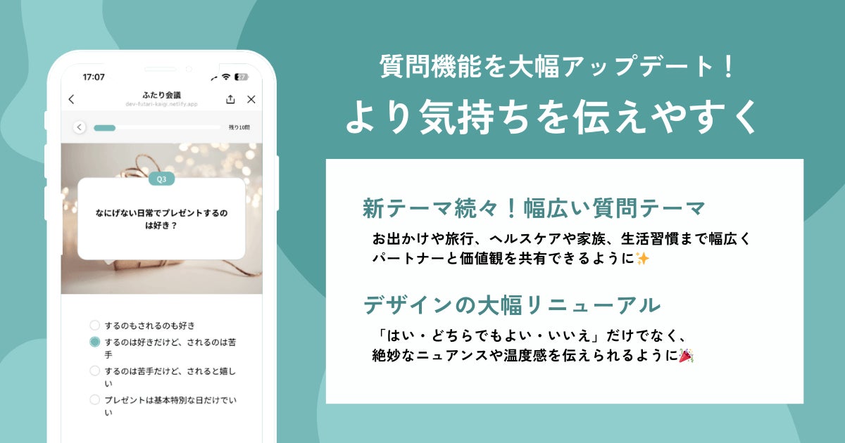 このたび、ふたりの価値観や気持ちをより的確に伝えられるようになるアップデートを実施しました。