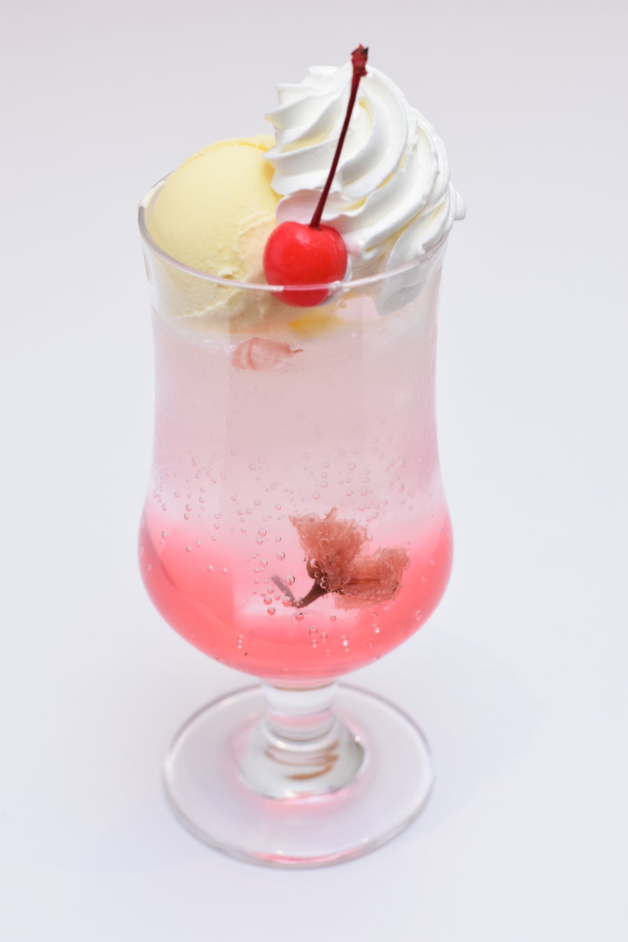 桜味のソーダにアイスクリームを浮かべました。